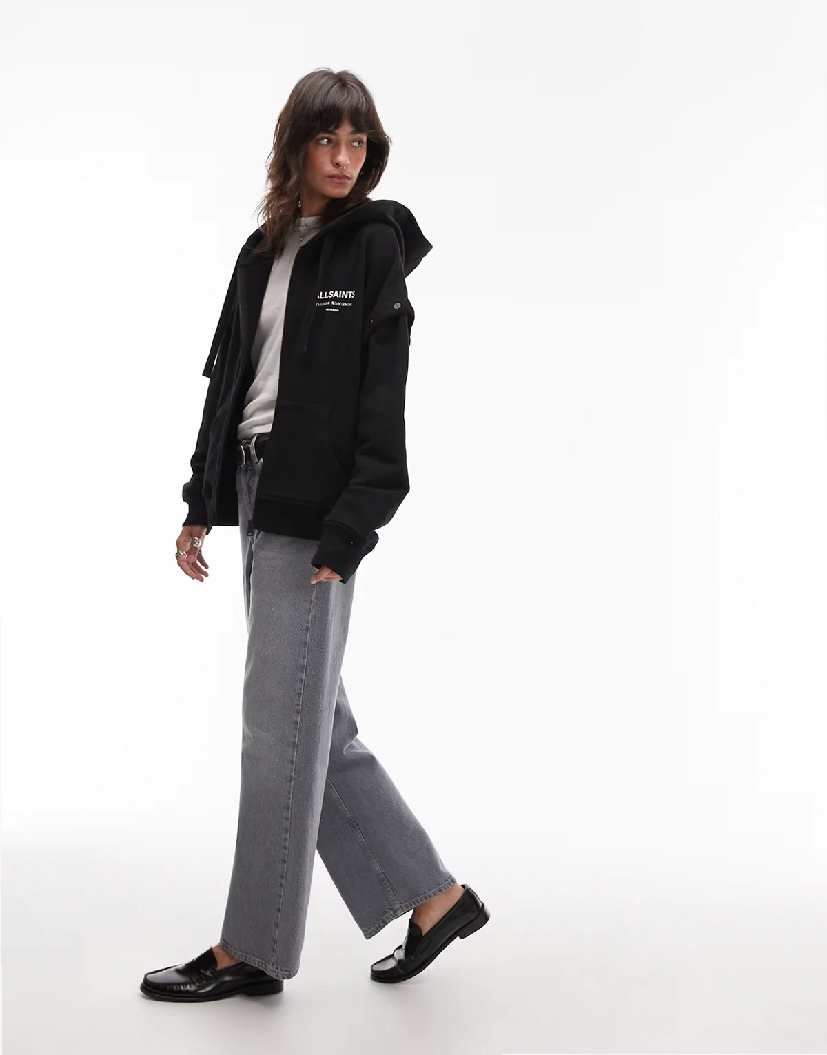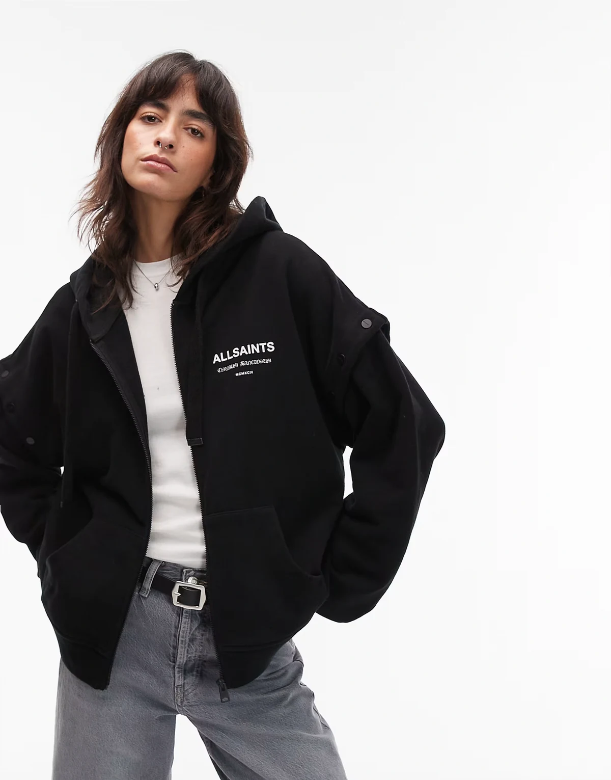 Logo AllSaints i napis z przodu i z tyłu