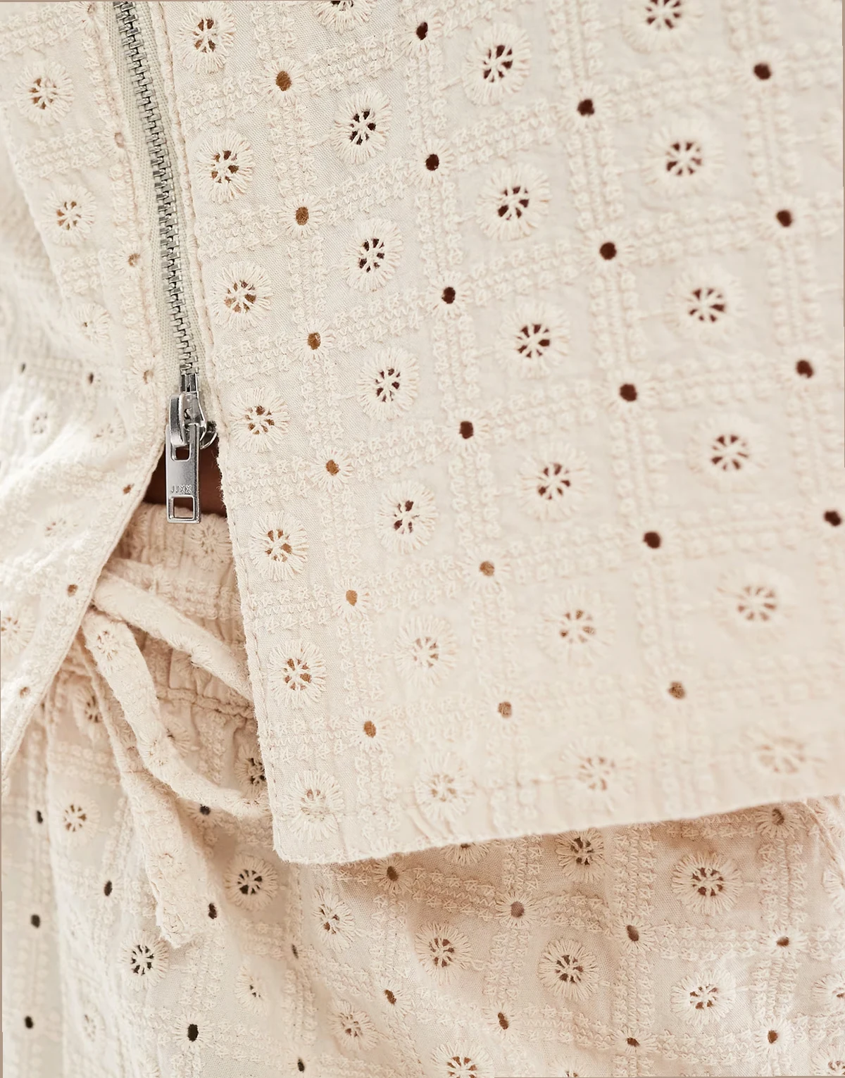– Kremowy, zapinany na zamek top z haftem angielskim, część zestawu