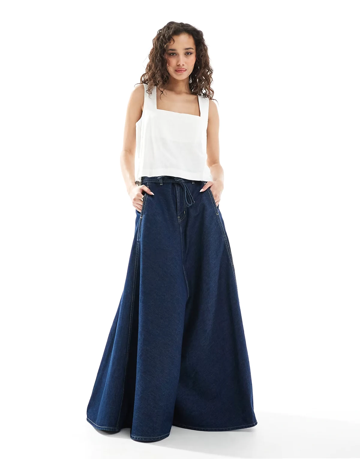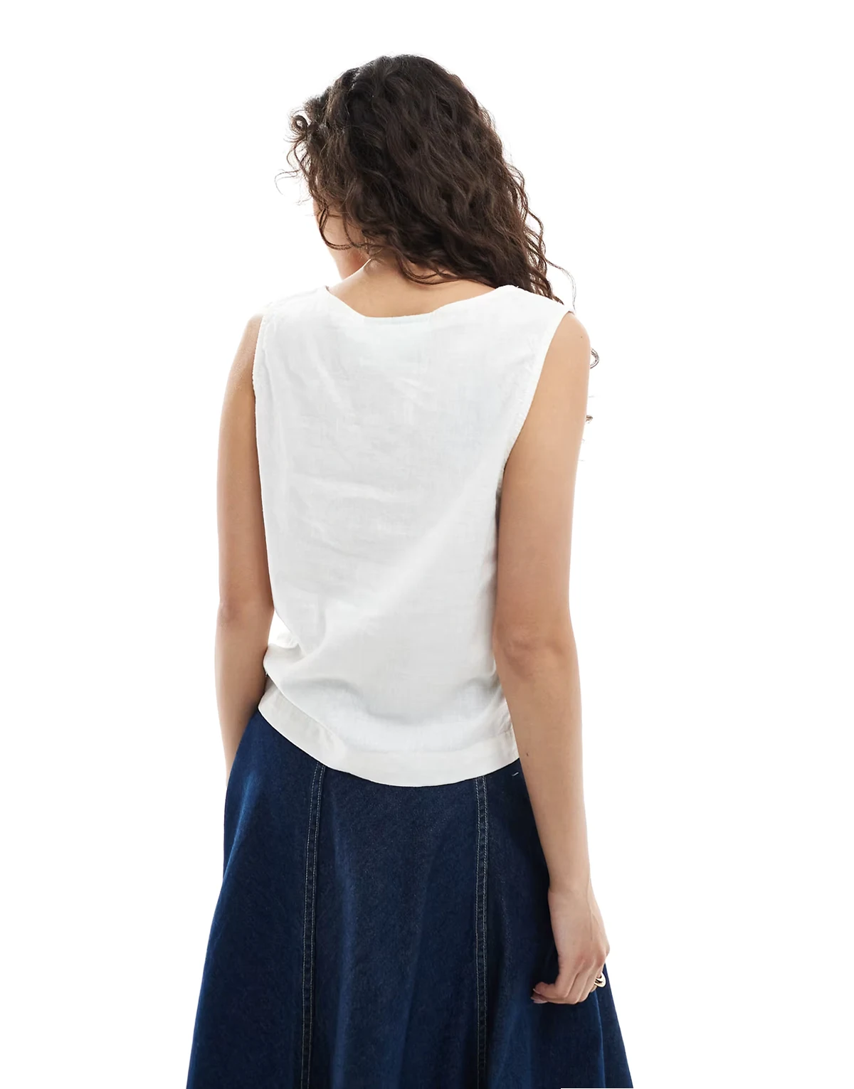 – Biały top z kwadratowym dekoltem z mieszanki lnu