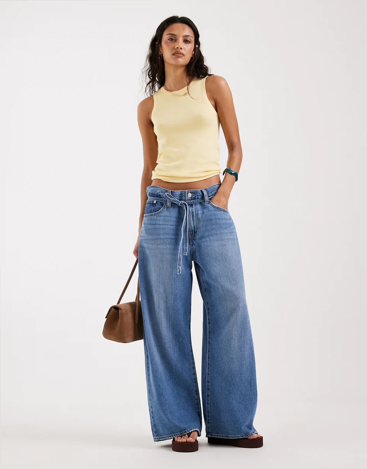– Żółty dzianinowy podkoszulek