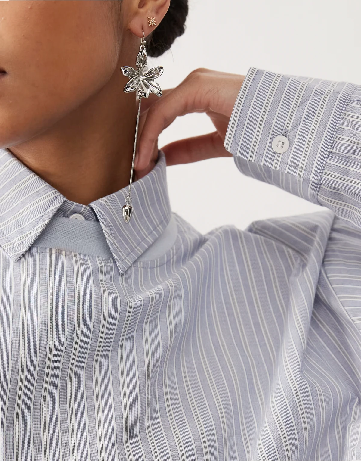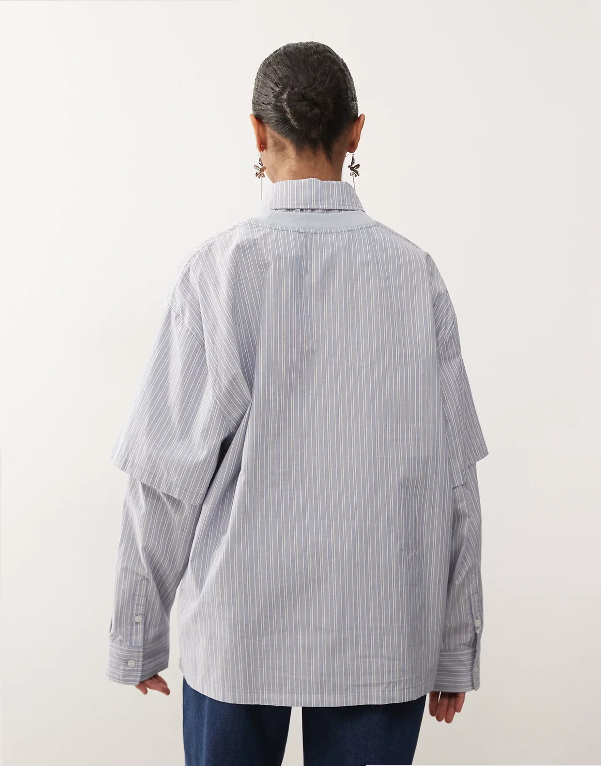 – T-shirt oversize 2 w 1 w niebiesko-białe paski z koszulą z długimi rękawami pod spodem
