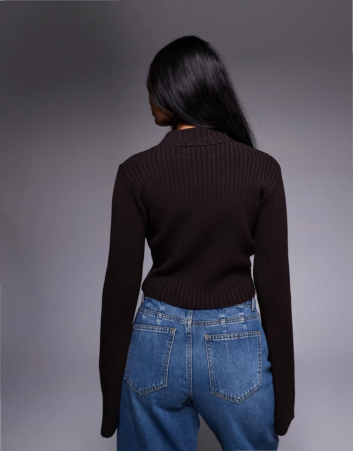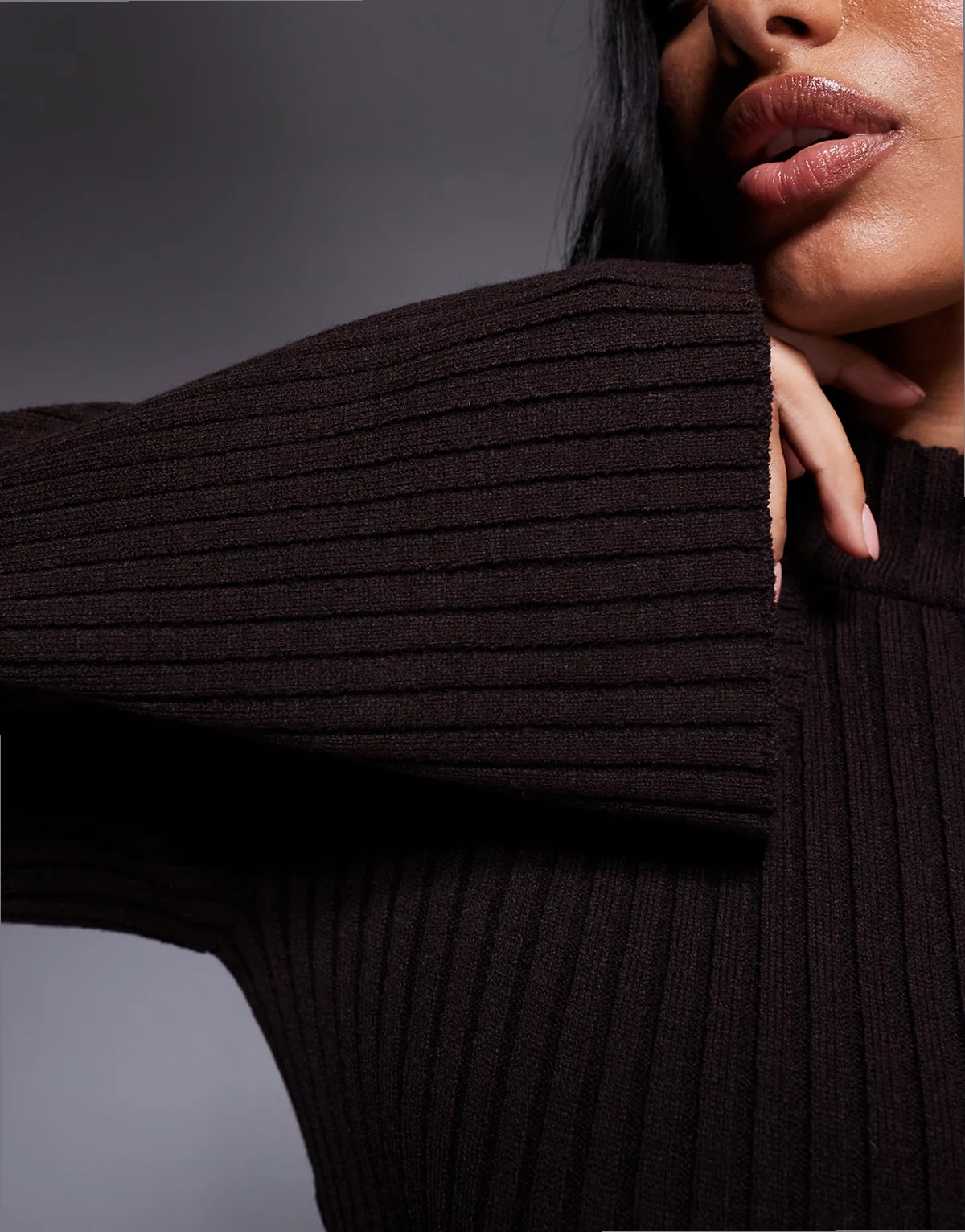 Exclusive – Brązowy sweter z golfem i rozkloszowanymi rękawami