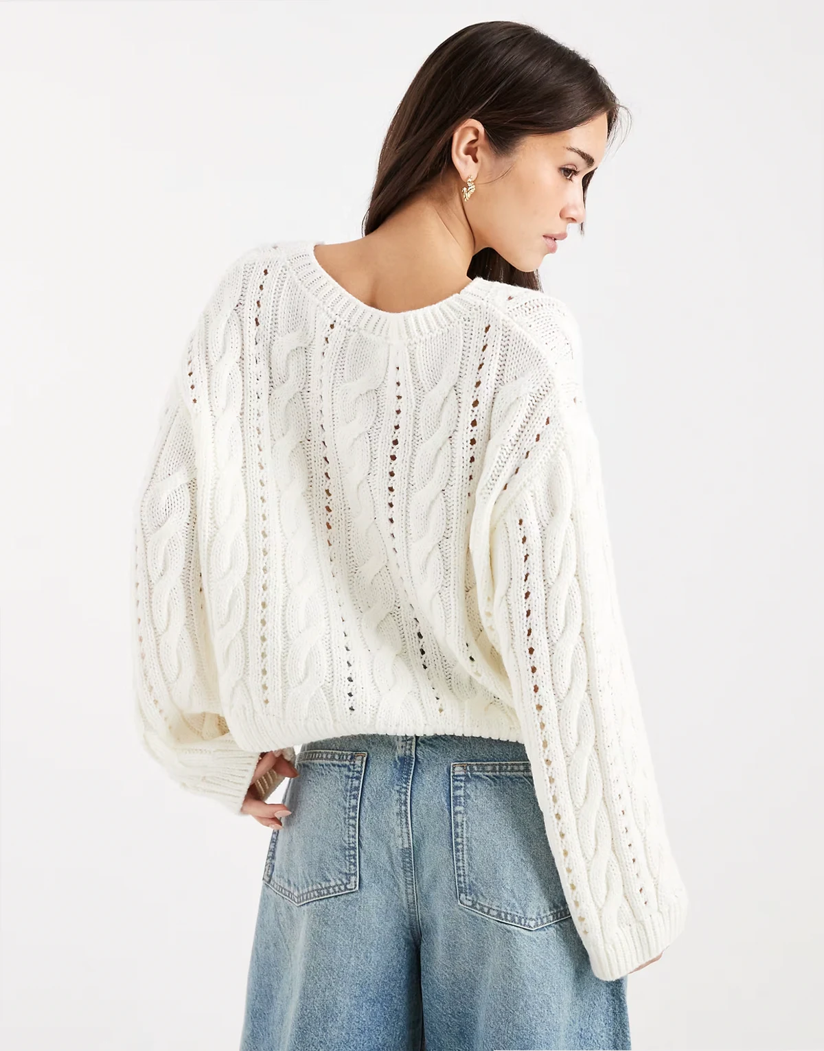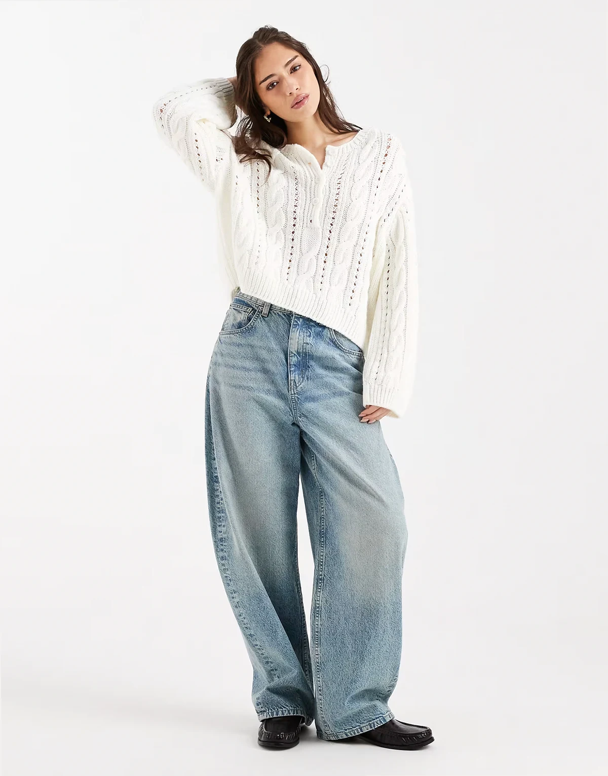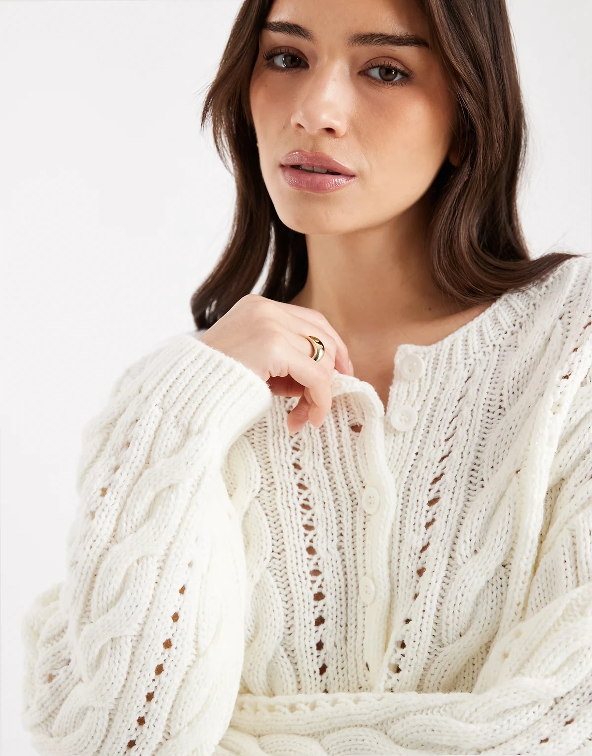 – Dzianinowy sweter o warkoczowym splocie z dekoltem henley