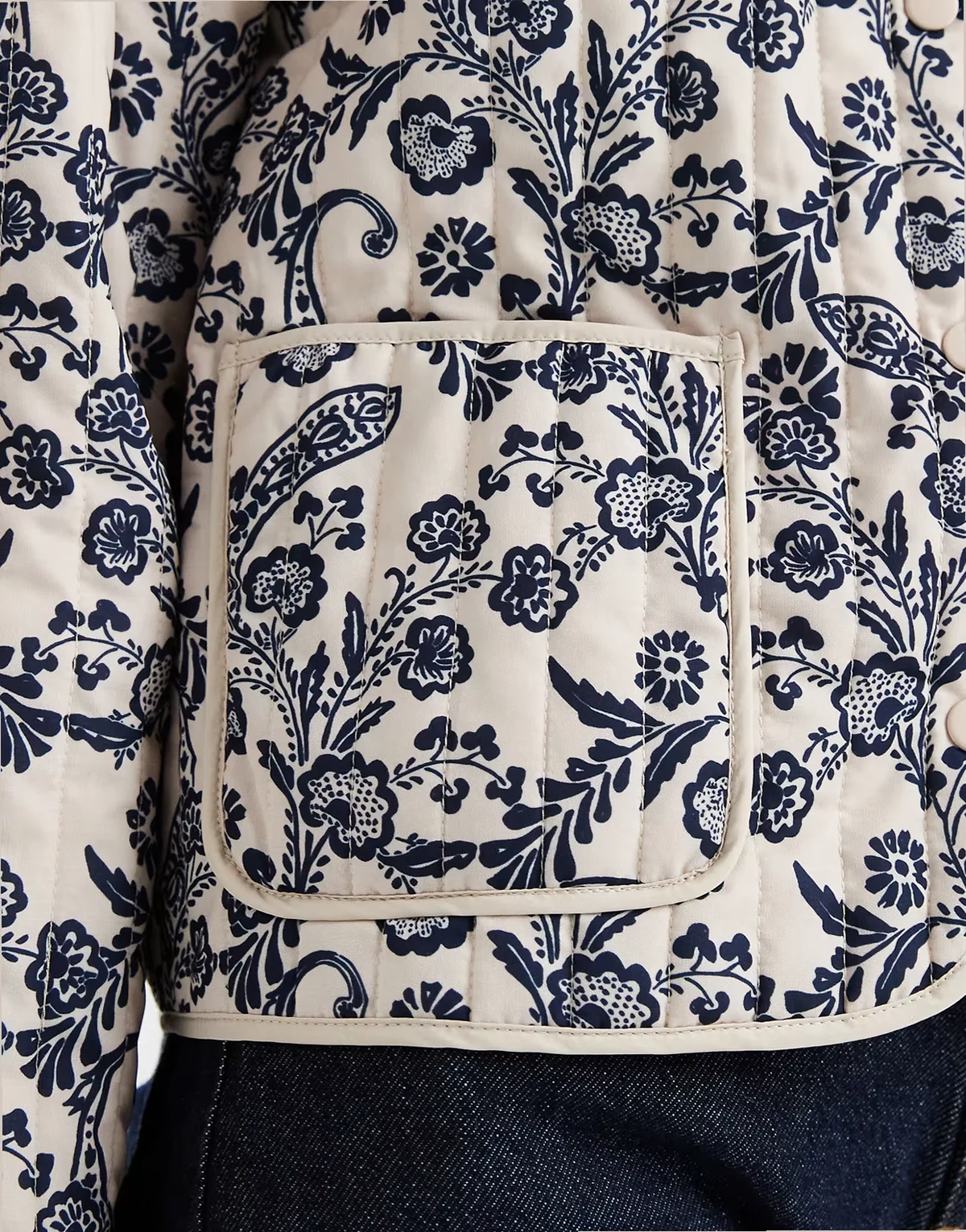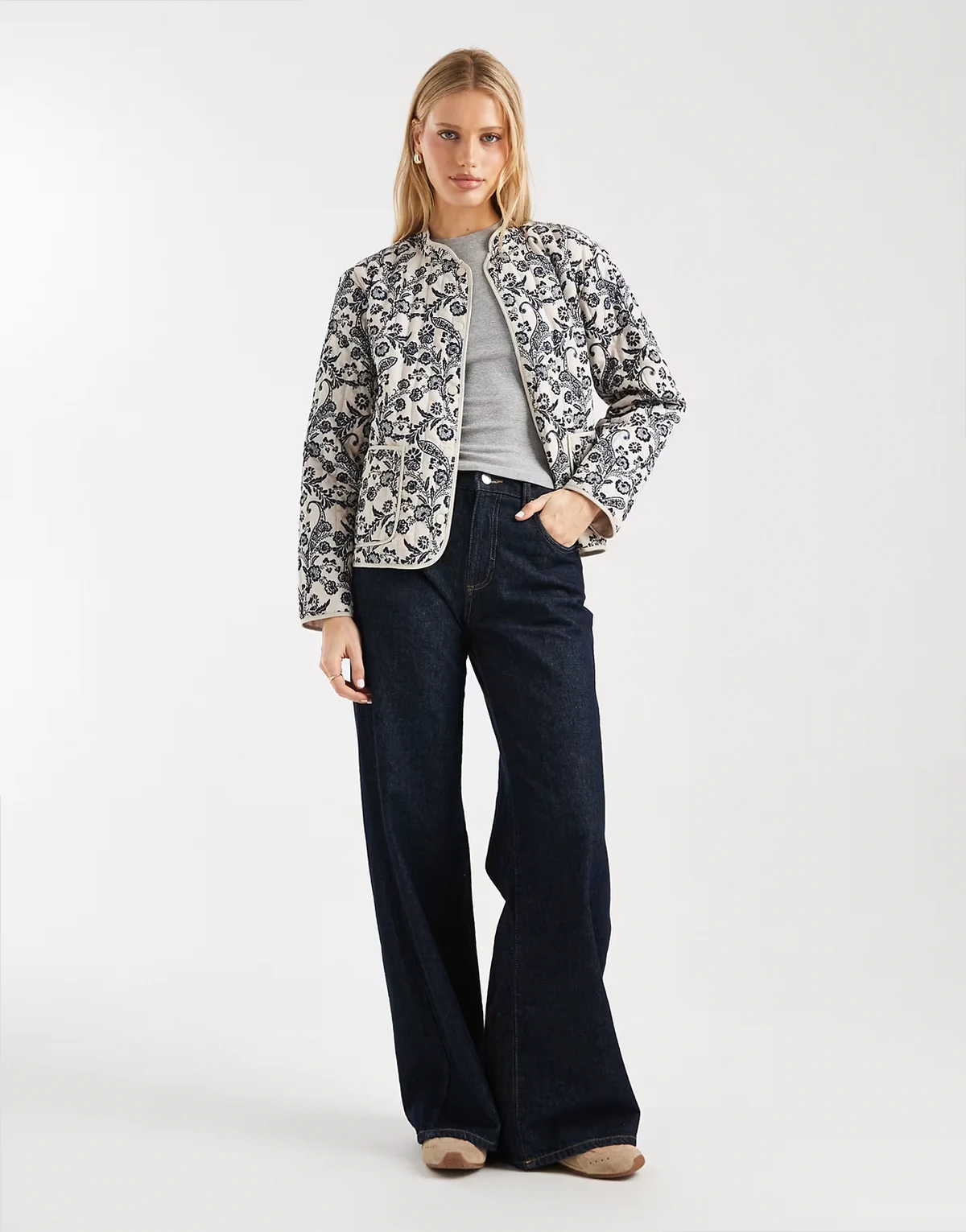 – Pikowana kurtka z kremowo-niebieskim wzorem paisley