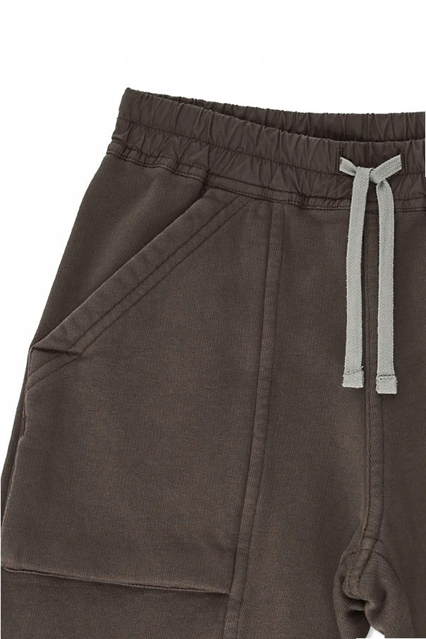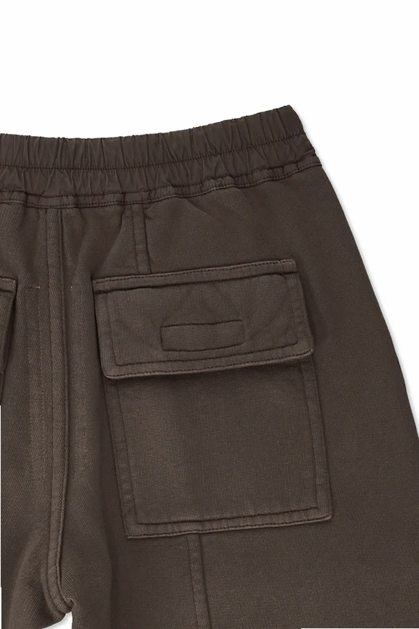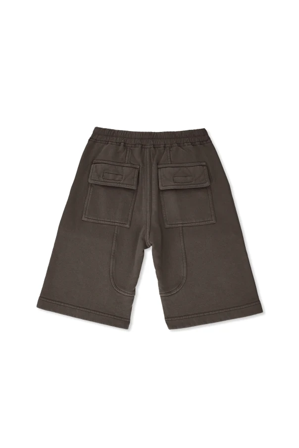 Szorty typu „cargo” autorstwa Rick Owens Kids stanowią wyraz szlachetnej prostoty oraz bezkompromisowego komfortu. Precyzyjnie skrojone ze starannie dobranej, miękkiej bawełny, zachwycają szlachetnym, brązowym wybarwieniem oraz lekko rozszerzanym krojem, sięgającym subtelnie poniżej kolan. Projekt wyróżniają aż sześć funkcjonalnych kieszeni : dwie ponadczasowe, naszywane kieszenie typu cargo z przodu, dwie klasyczne, skośne kieszenie na biodrach oraz dwie kieszenie tylne, zamykane dla dodatkowego bezpieczeństwa drobiazgów.