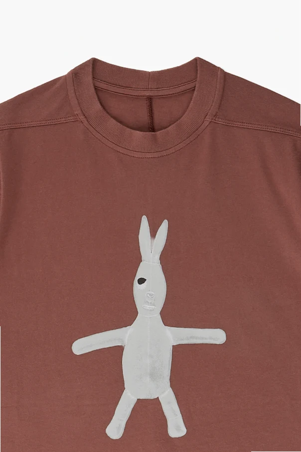 Front bluzki ozdabia wyrazisty, minimalistyczny nadruk – biała sylwetka przypominająca pluszową maskotkę, prezentowana w oszczędnej formie. Ascetyzm grafiki nadaje t-shirtowi nowoczesny i awangardowy charakter, zachowując przy tym wyważoną elegancję oraz ponadczasowość, charakterystyczną dla kolekcji projektanta Ricka Owensa Kids.