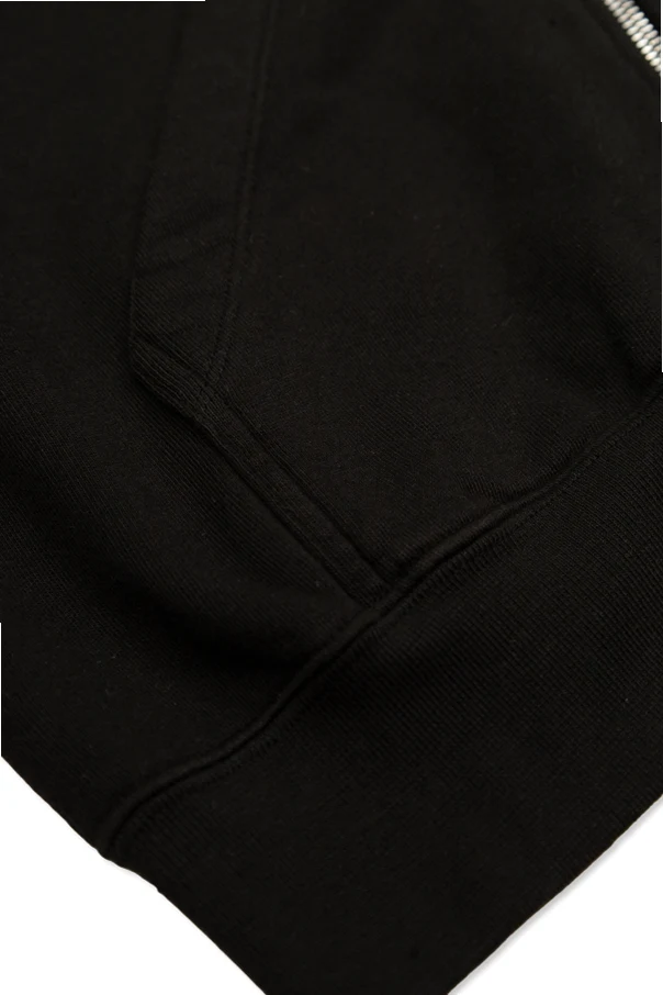 Wysokogatunkowa dzianina dresowa — w pełni naturalna bawełna — zapewnia przyjemne doznania dotykowe oraz trwałość. Bluza wyposażona jest w solidny, metalowy suwak w kolorze srebra, który kontrastuje szlachetnie z czernią tkaniny, a także klasyczną kieszeń typu kangurka o podwójnym szwie, zwiększającym jej odporność. Zwieńczenie stanowią elastyczne ściągacze przy rękawach, dbające o doskonałe dopasowanie.