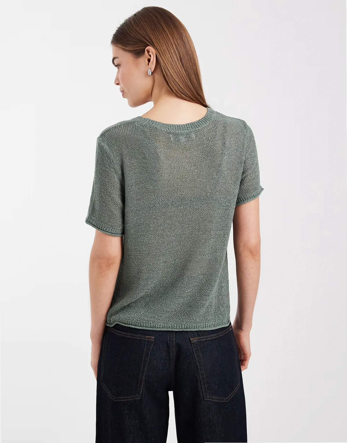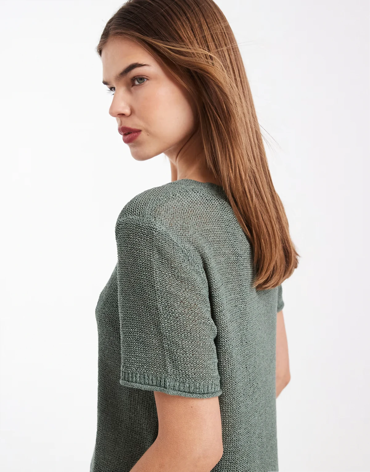 – Ciemnozielony lekki T-shirt z ażurowej dzianiny