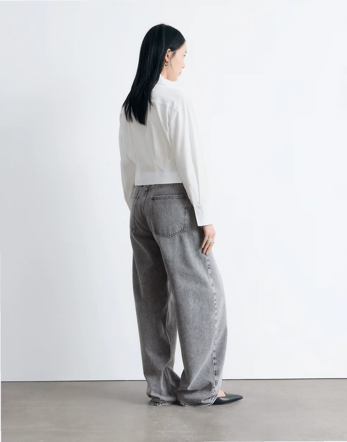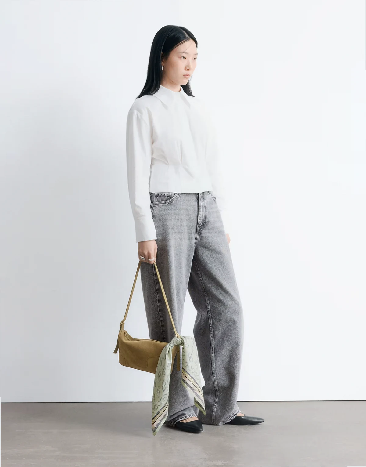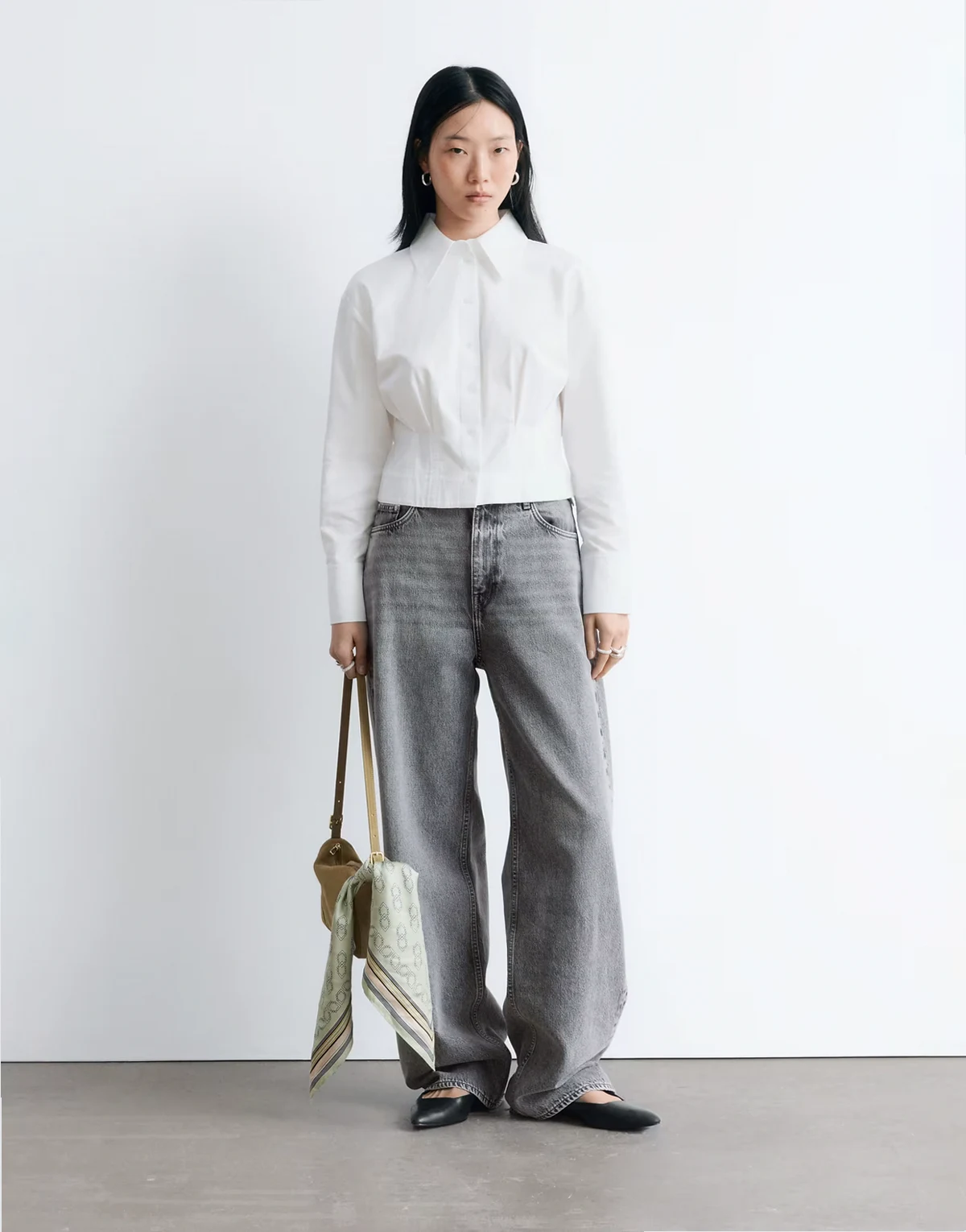 – Dopasowana w talii biała koszula z mieszanki bawełny