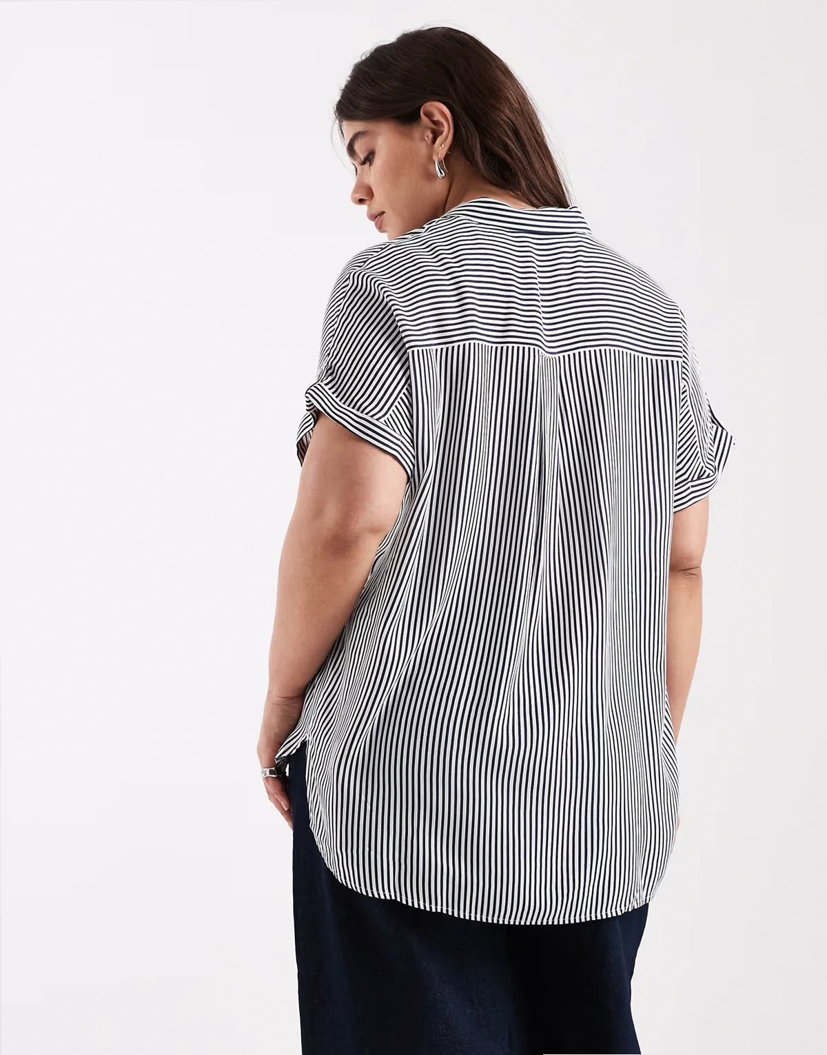 – Kopertowa koszula w prążki z rękawami typu kokon
