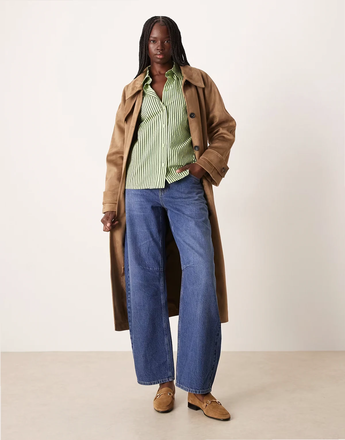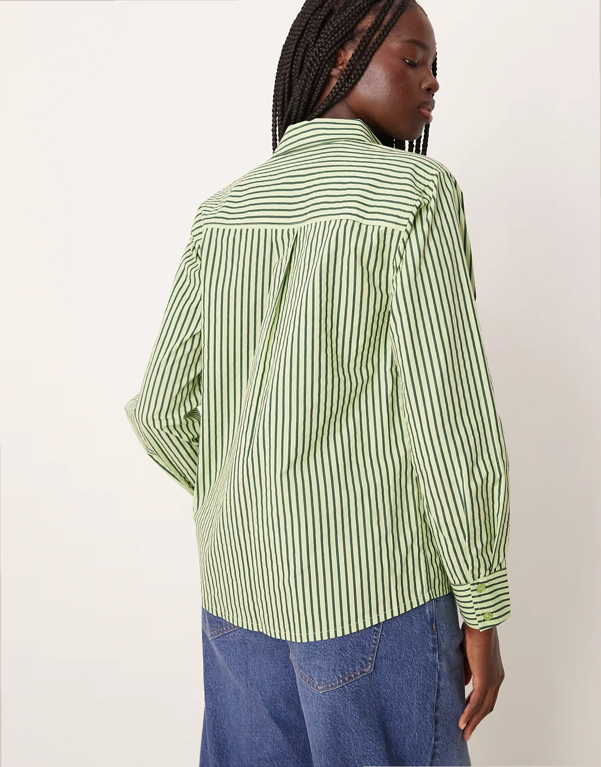 – Kopertowa koszula w prążki z rękawami typu kokon