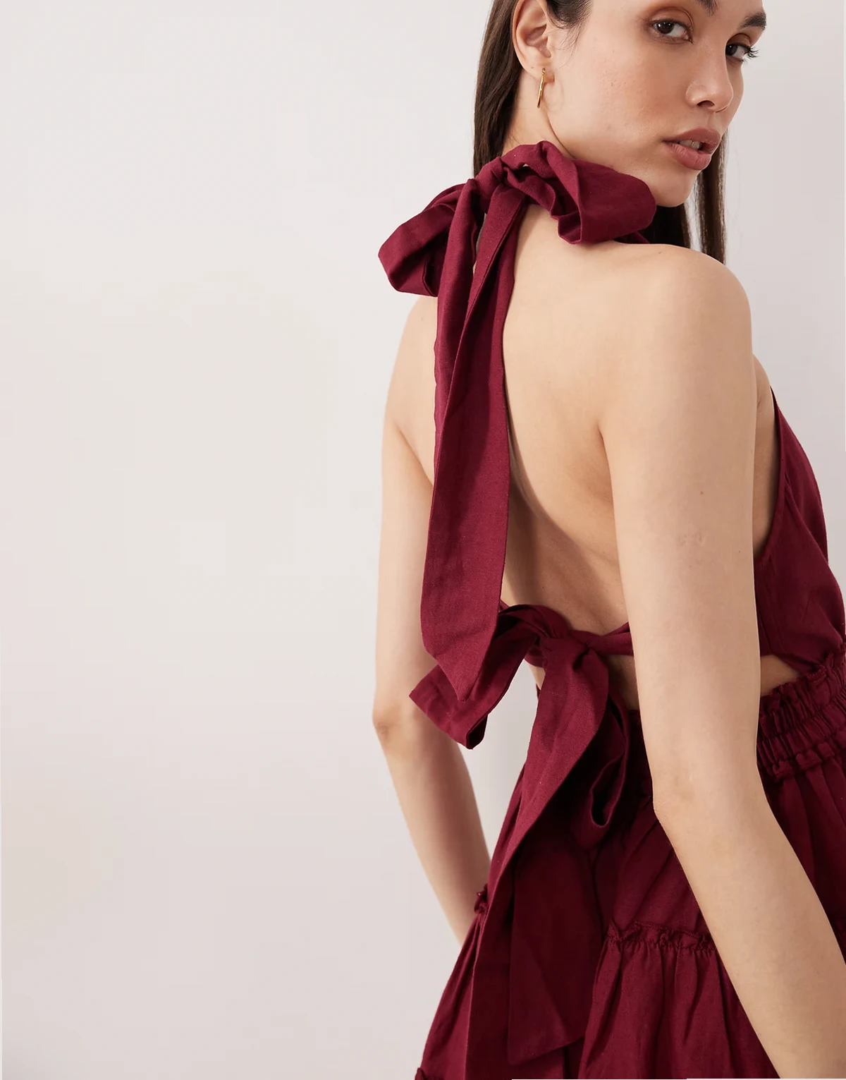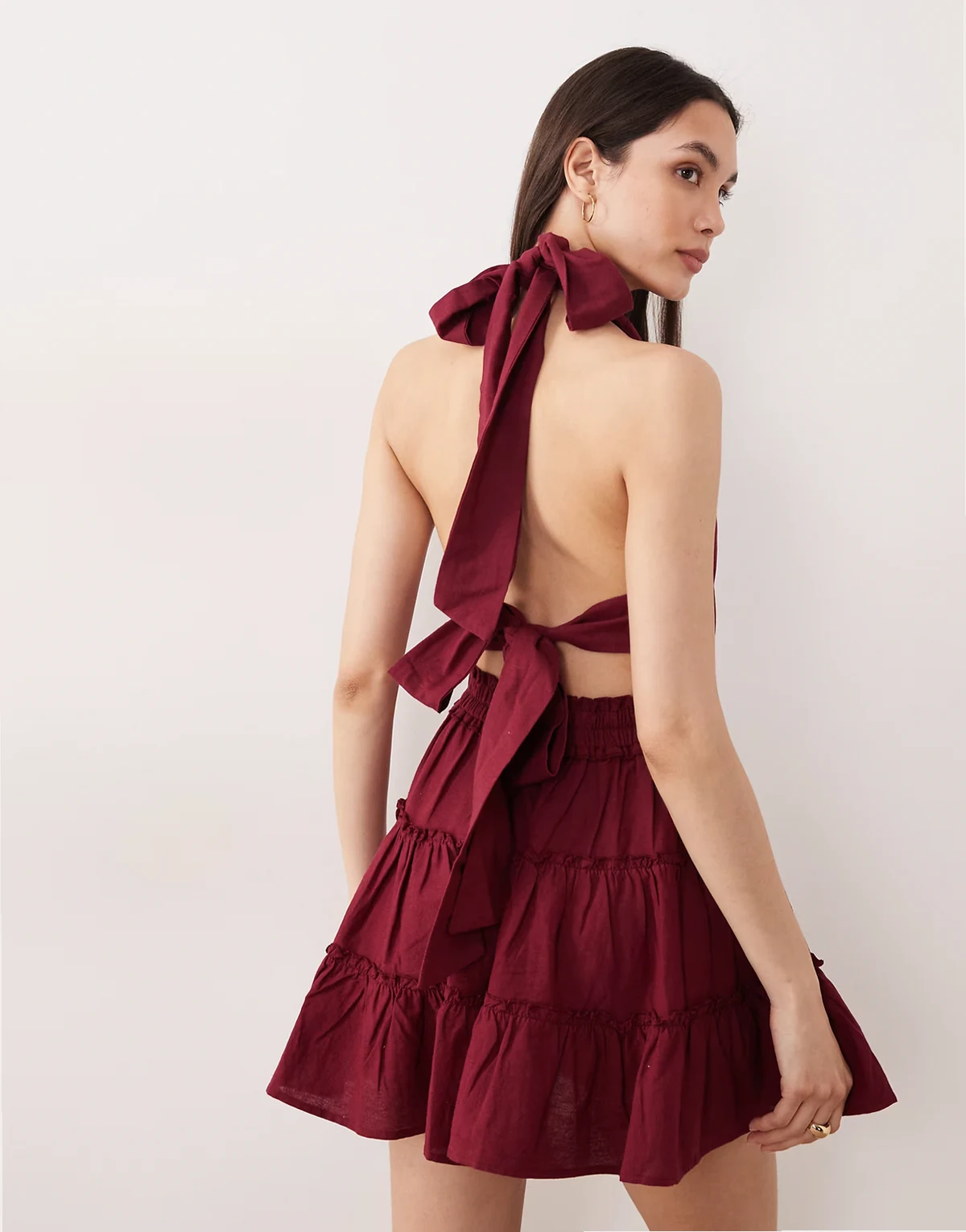 Esmee – Wiśniowoczerwona plażowa sukienka mini z dekoltem typu halter