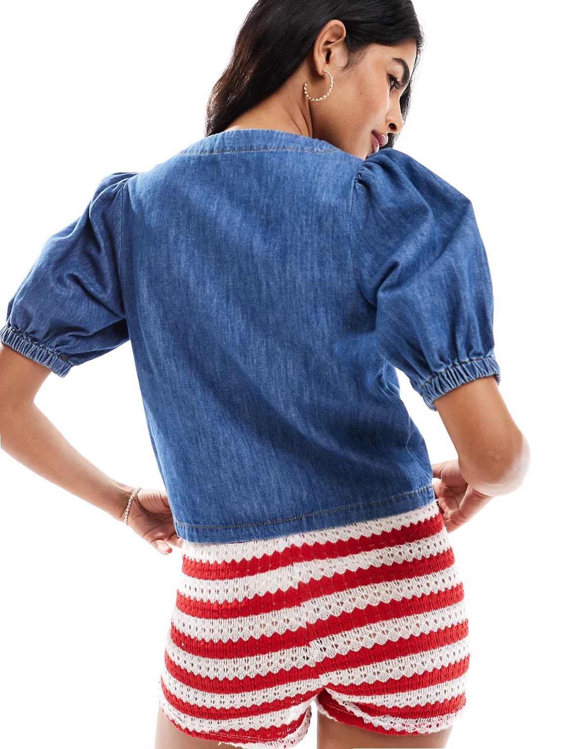 – Czarny marszczony top z bufkami i kołnierzykiem w groszki, część zestawu