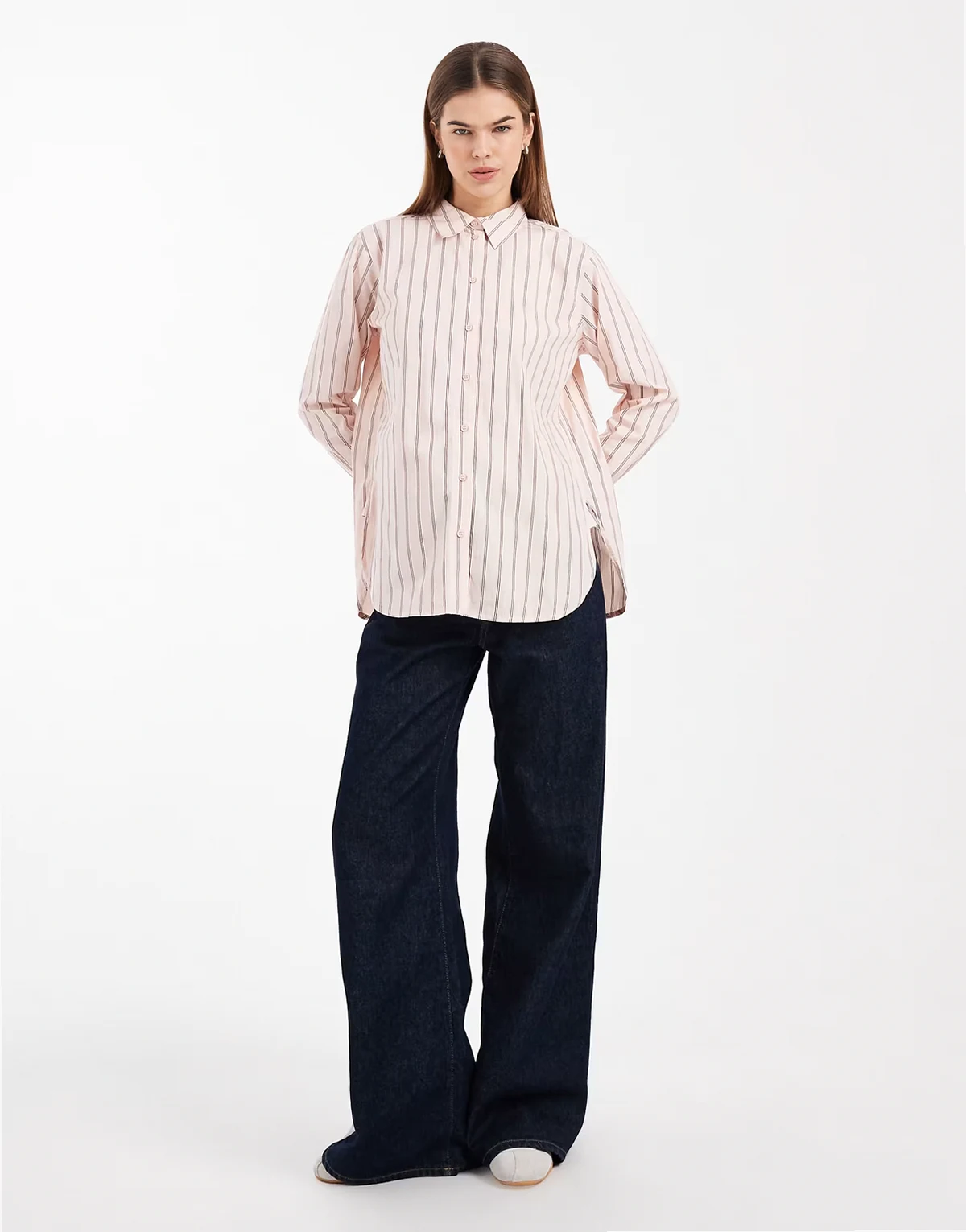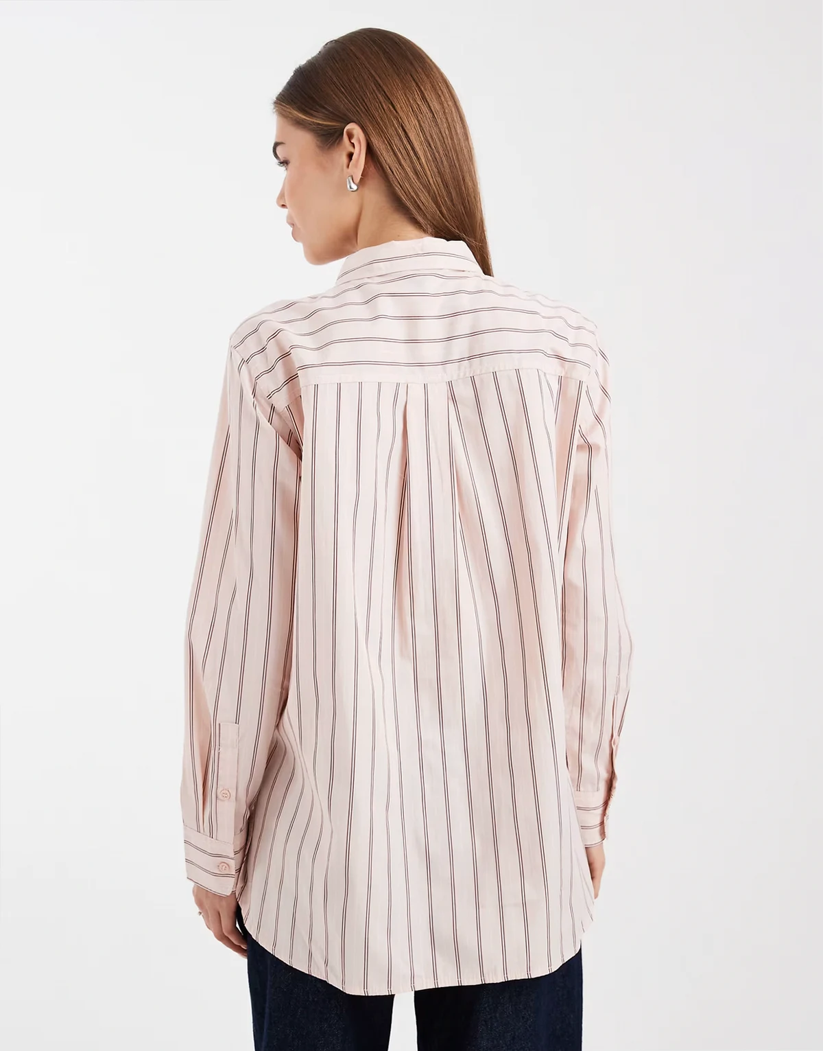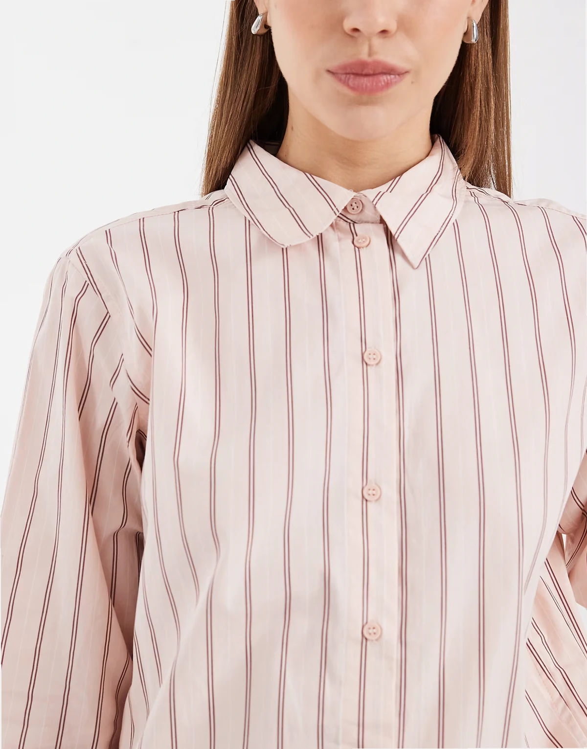 – Jasnoróżowa bawełniana koszula oxford oversize w podwójne paski