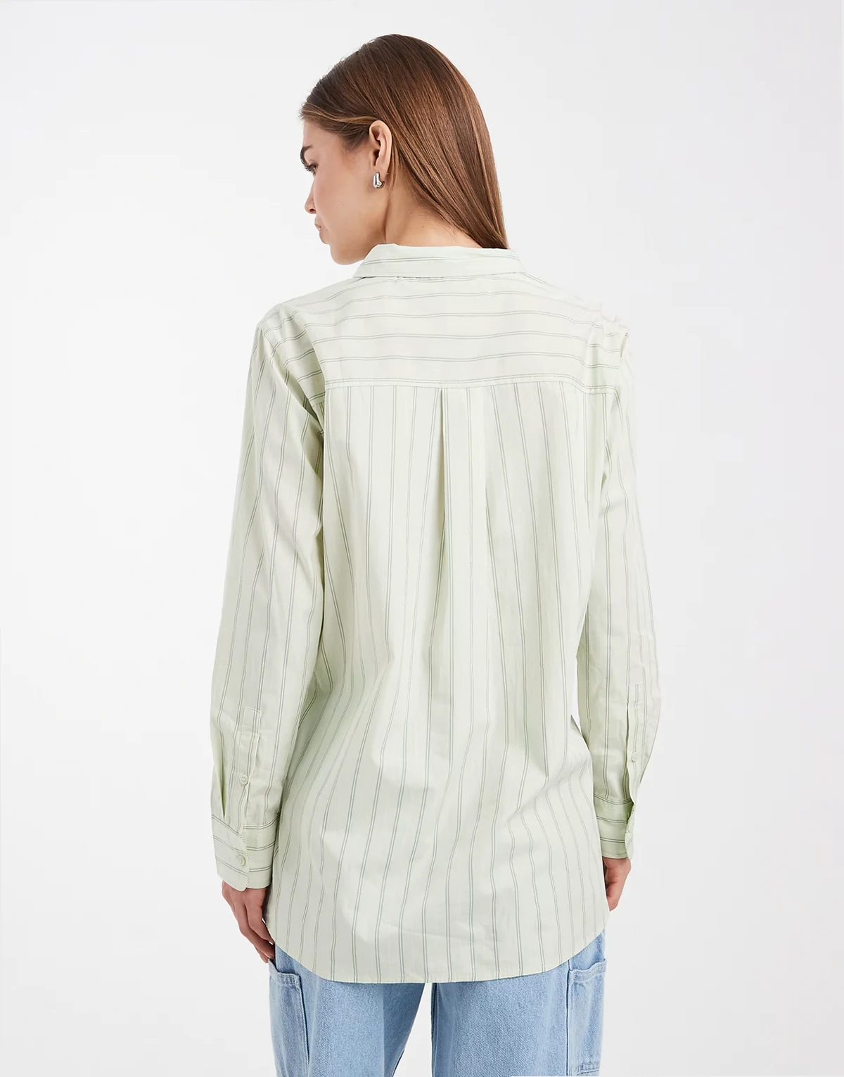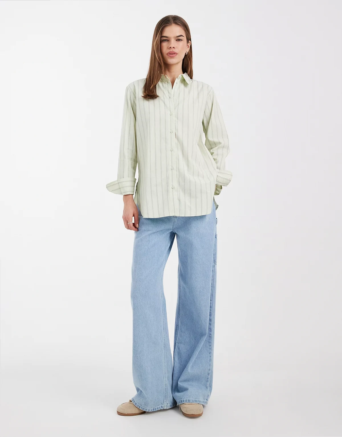 – Zielona bawełniana koszula oxford oversize w podwójne paski