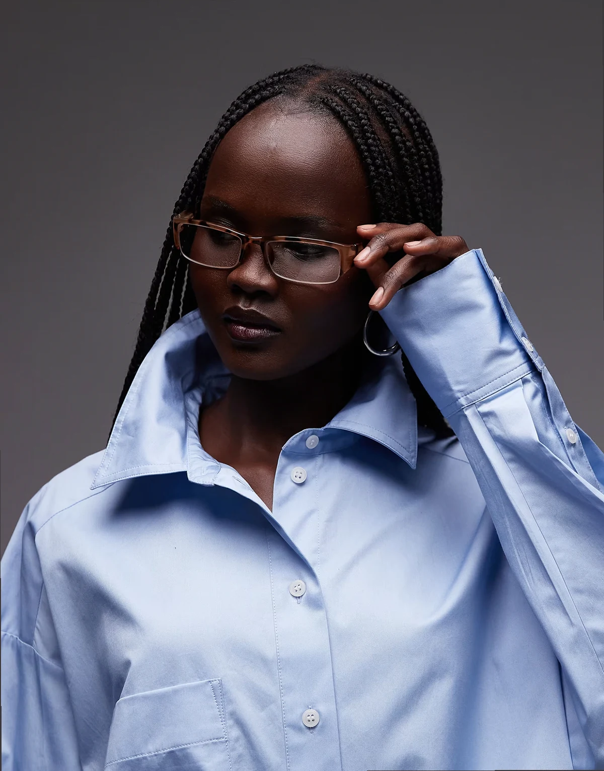 – Jasnoniebieska bawełniana koszula oversize