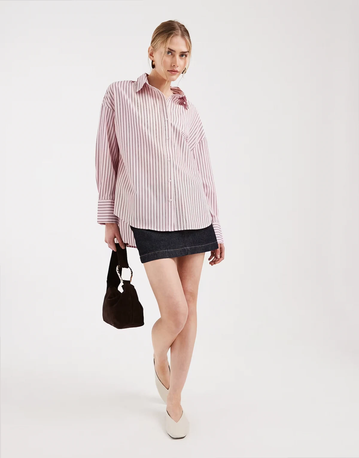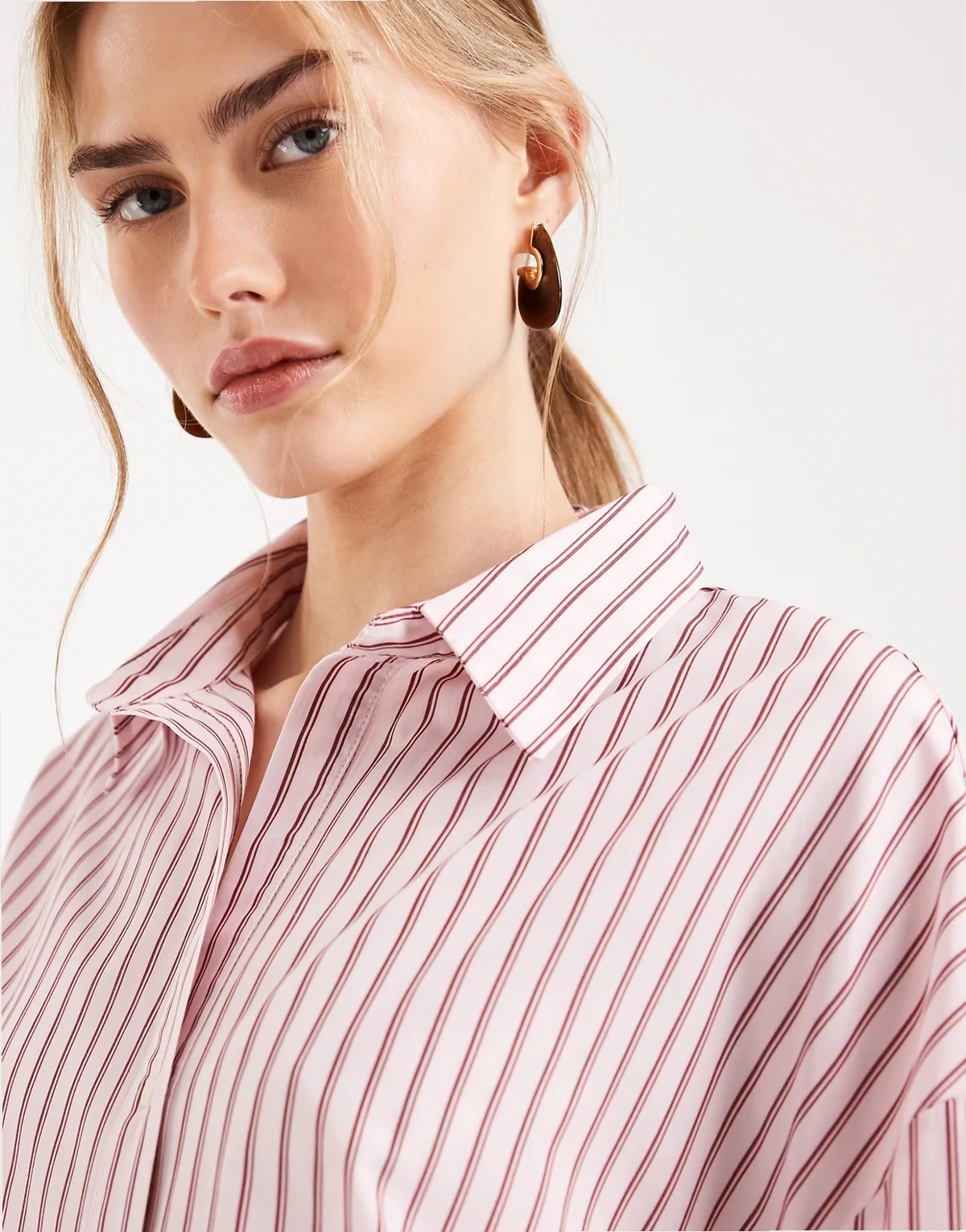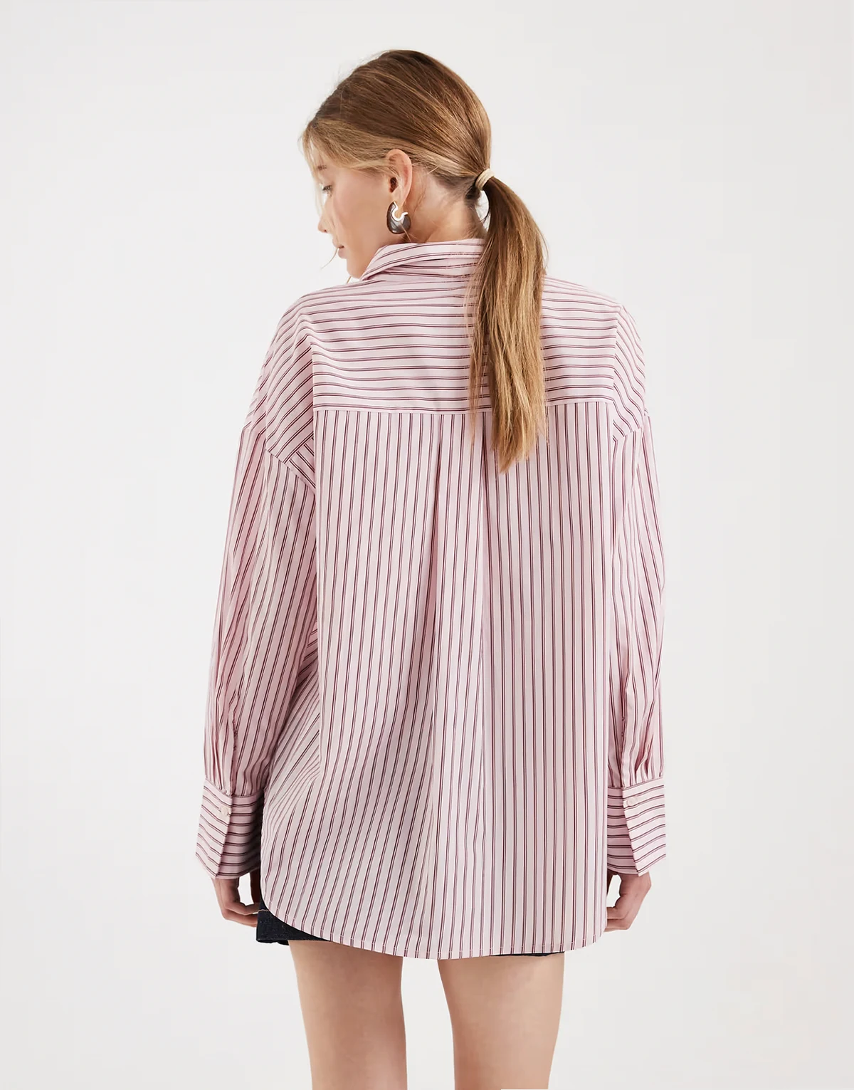 – Jasnoróżowa koszula oversize w paski