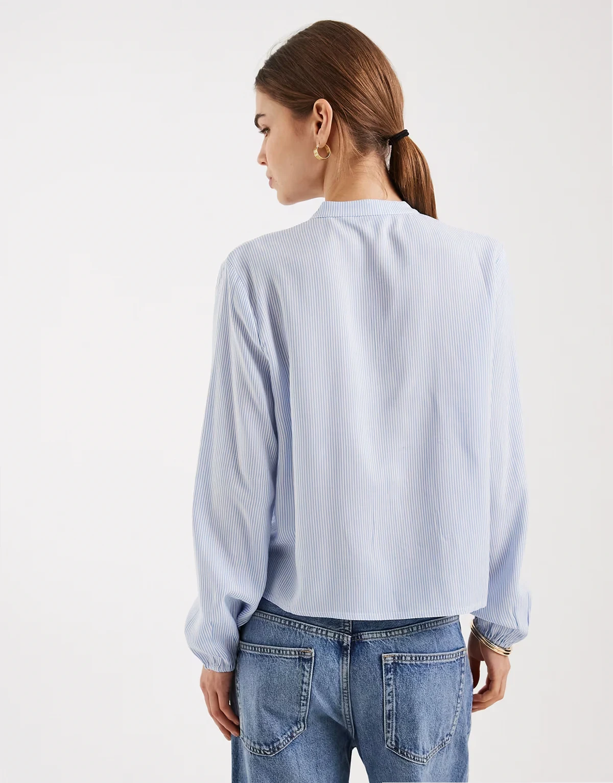 – Kopertowa koszula w prążki z rękawami typu kokon