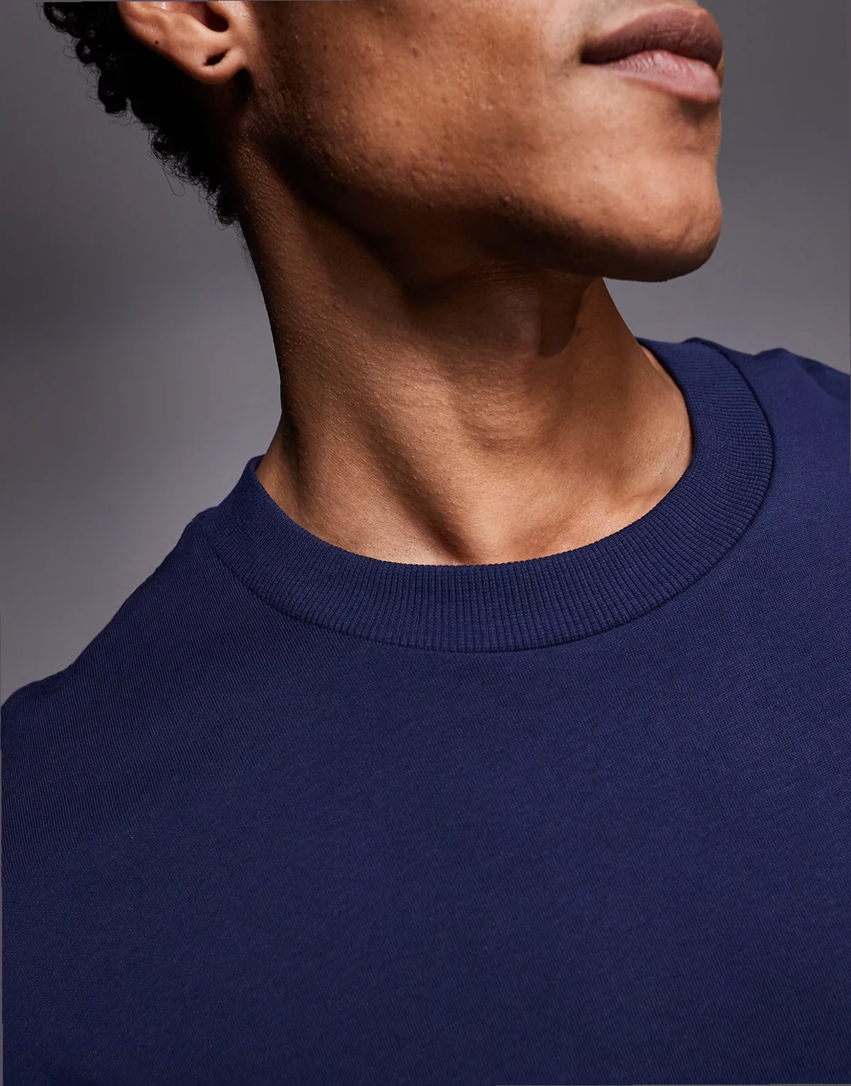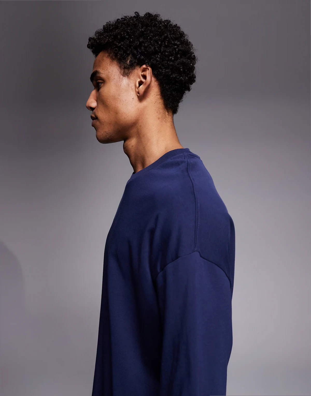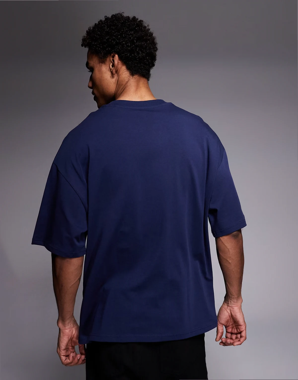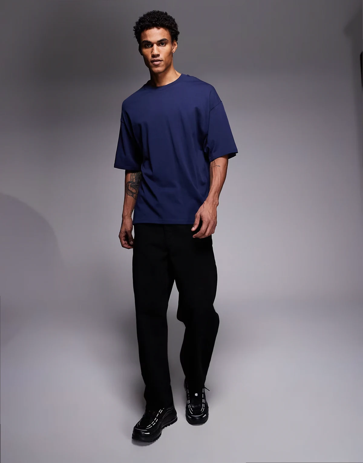 – Granatowy T-shirt oversize o pudełkowym kroju