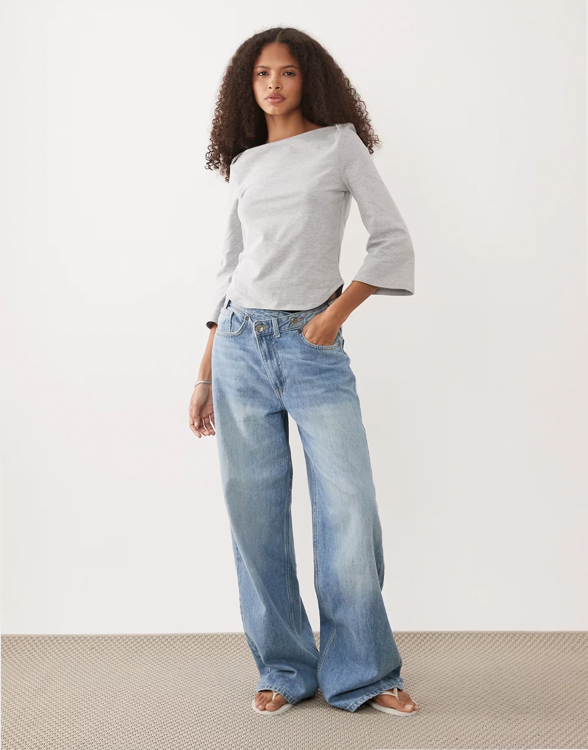 – Szary top z długimi rękawami i dekoltem w łódkę