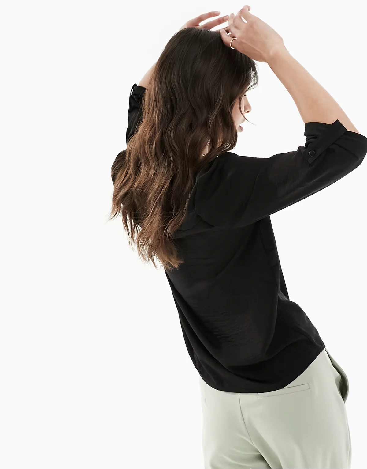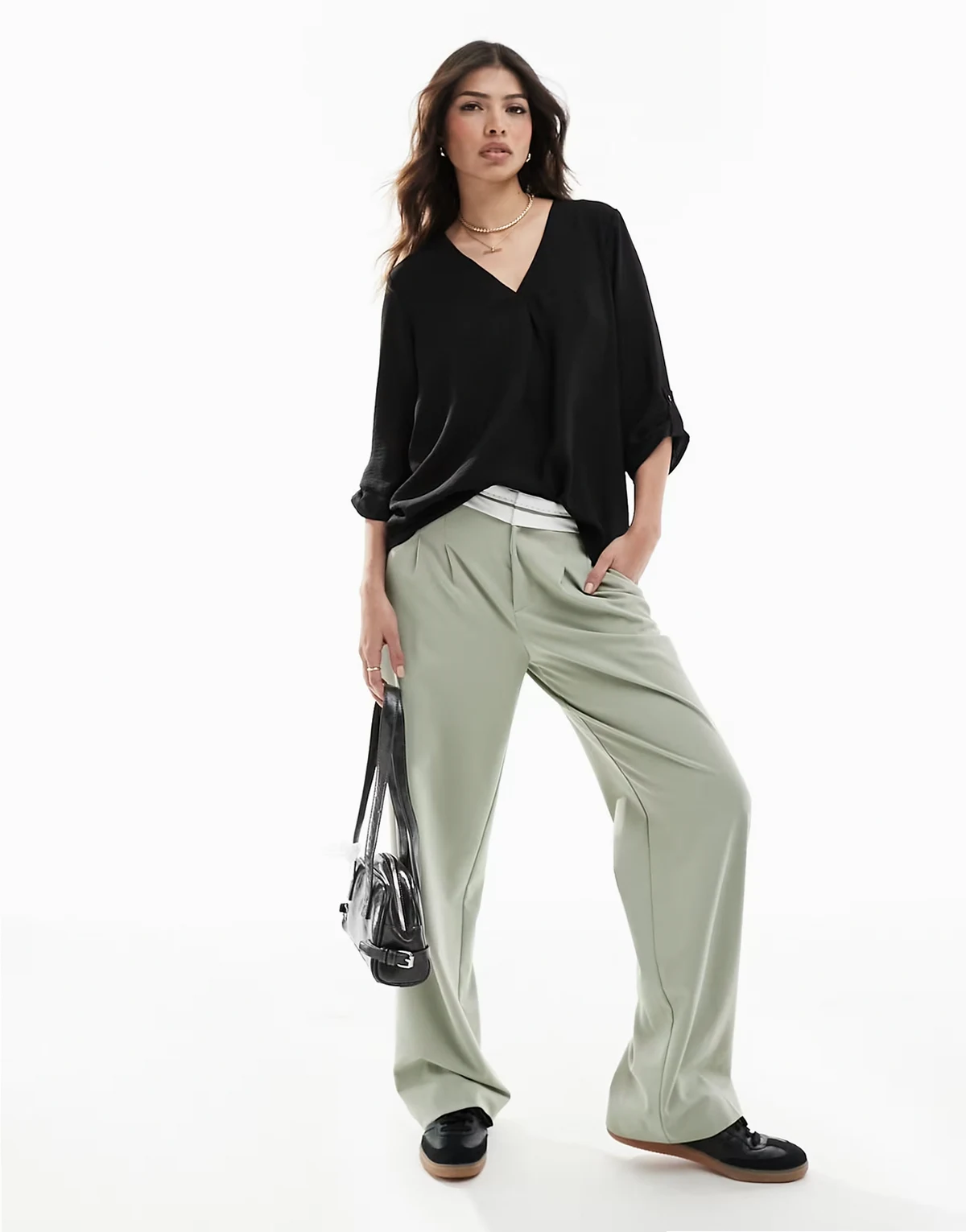 – Czarna bluzka z dekoltem w kształcie litery V