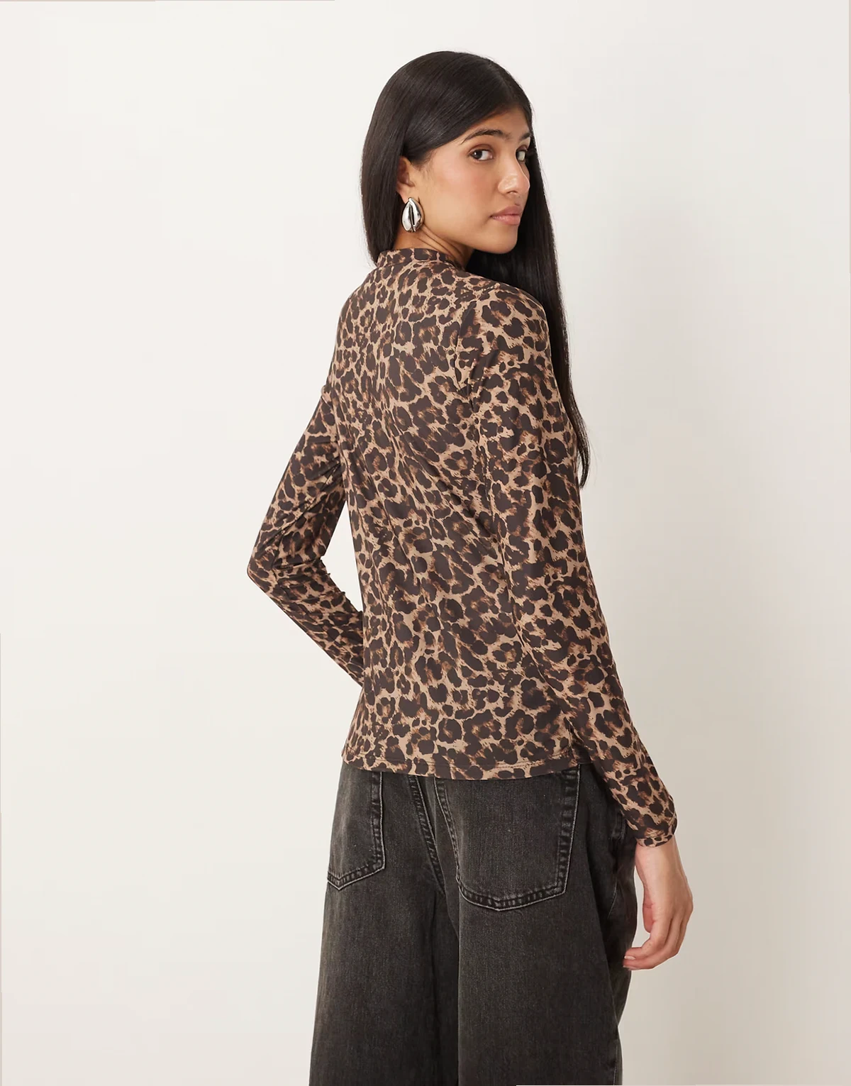 – Top w panterkę z długimi rękawami i zabudowanym dekoltem