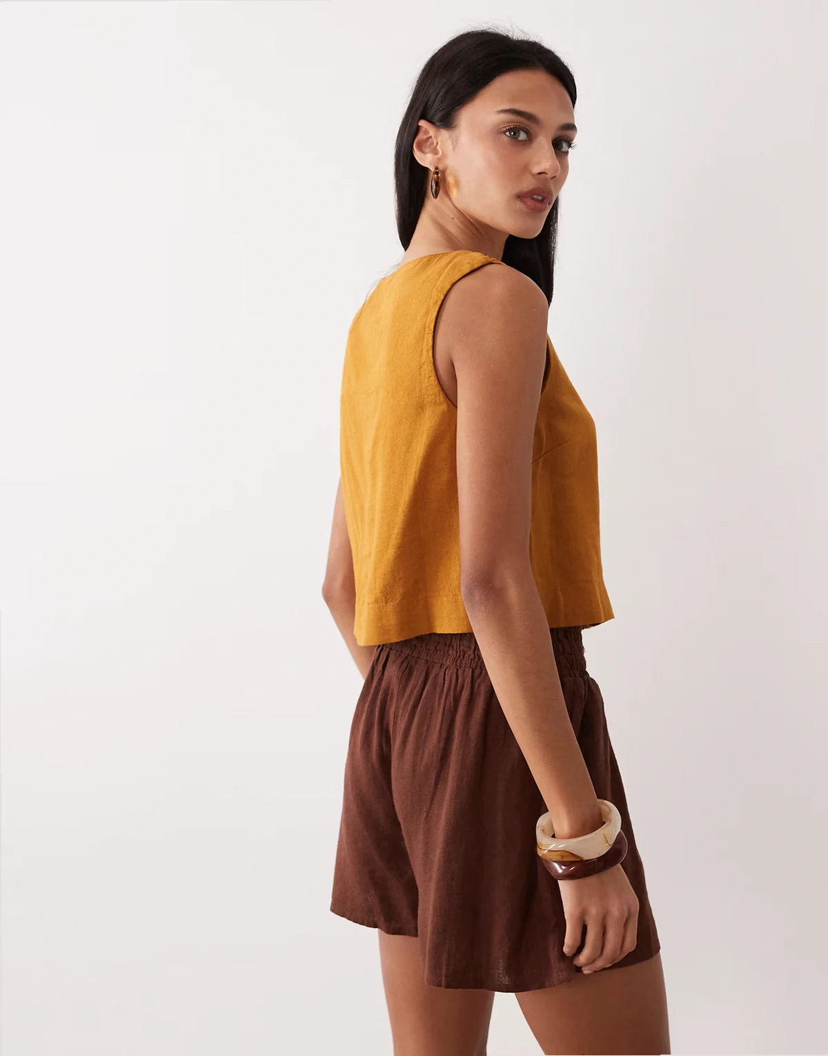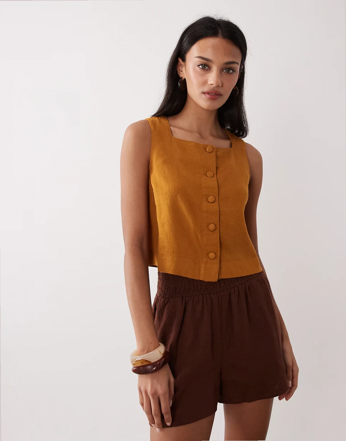 – Sammie – Zapinany na guziki top z mieszanki lnu w kolorze tabaki, część zestawu