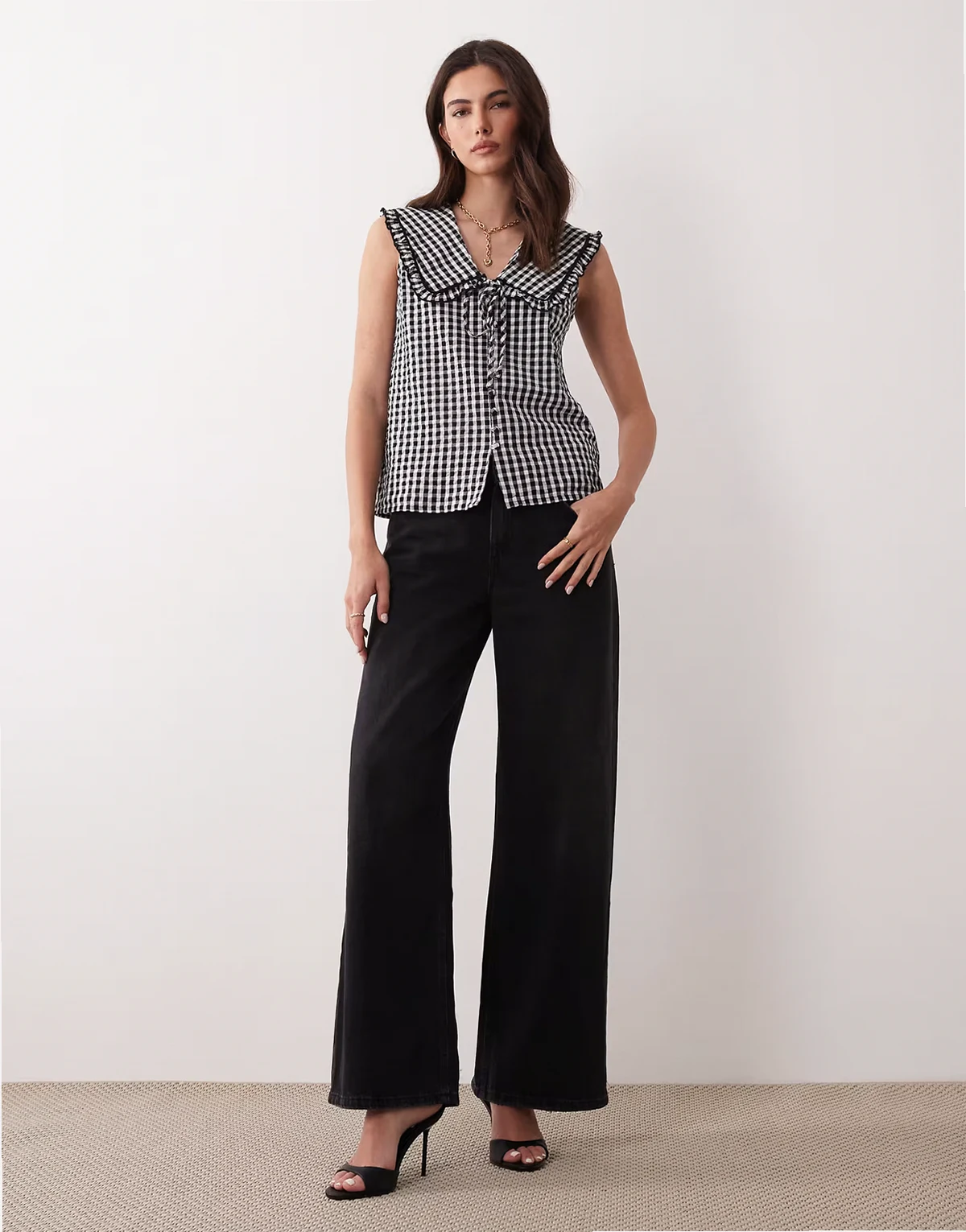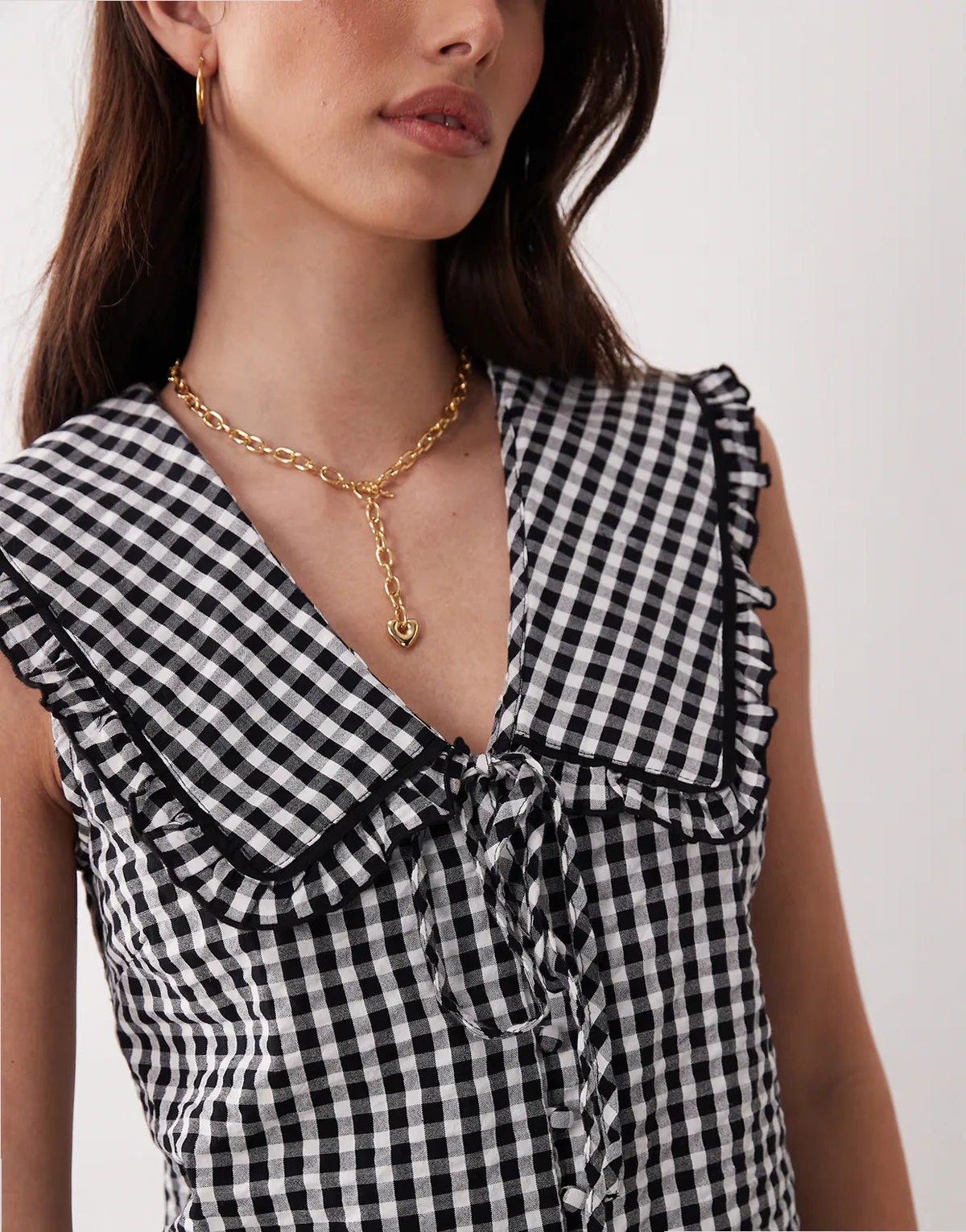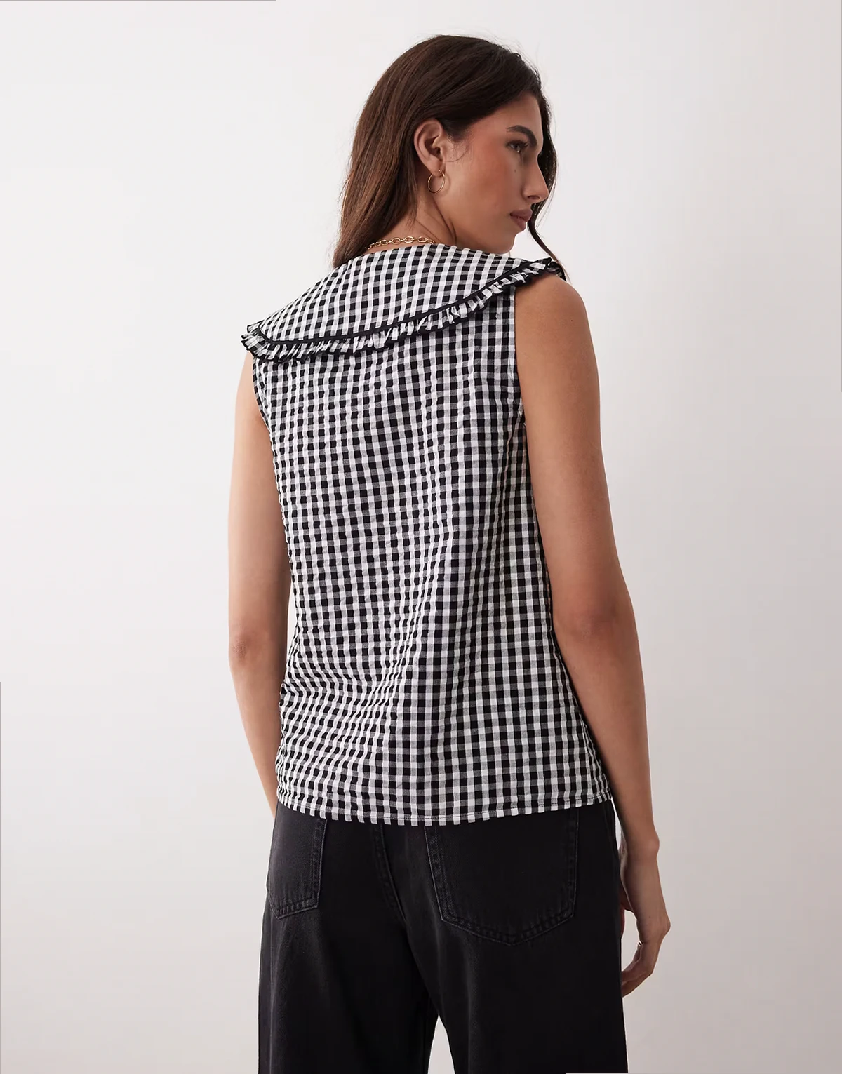– Blair – Bluzka w czarno-białą kratkę vichy z kołnierzem z falbanką