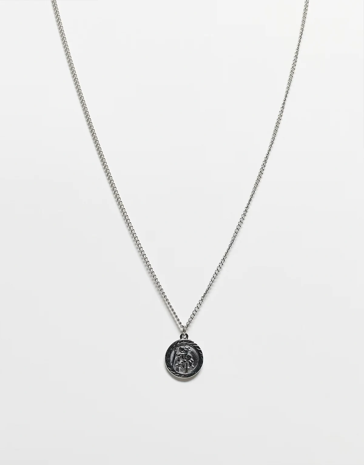 Unisex – Naszyjnik ze stali nierdzewnej w odcieniu oksydowanego srebra z zawieszką ze św. Krzysztofem