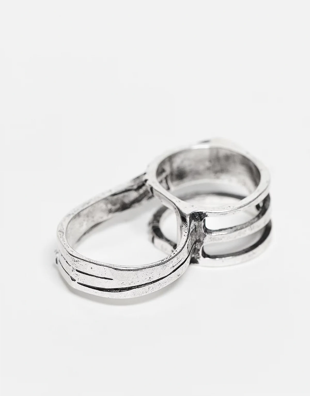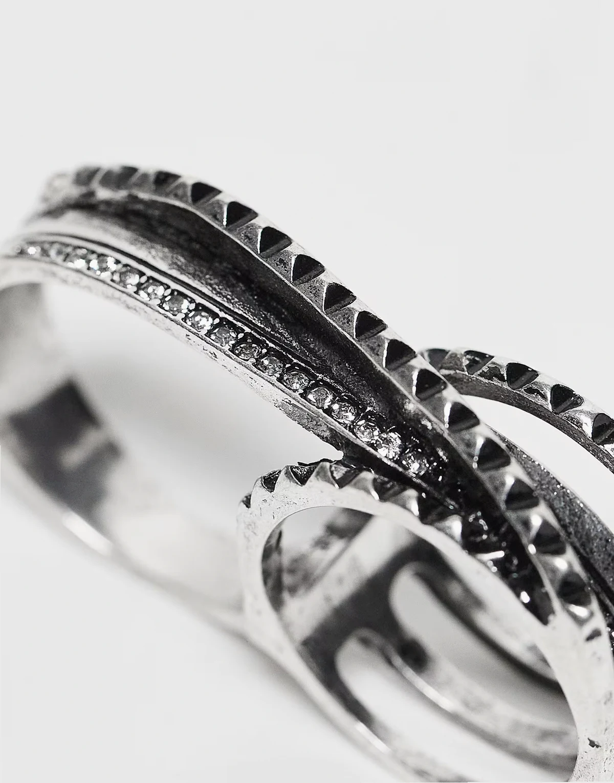 Unisex – Podwójny pierścionek w odcieniu oksydowanego srebra z motywem piórka