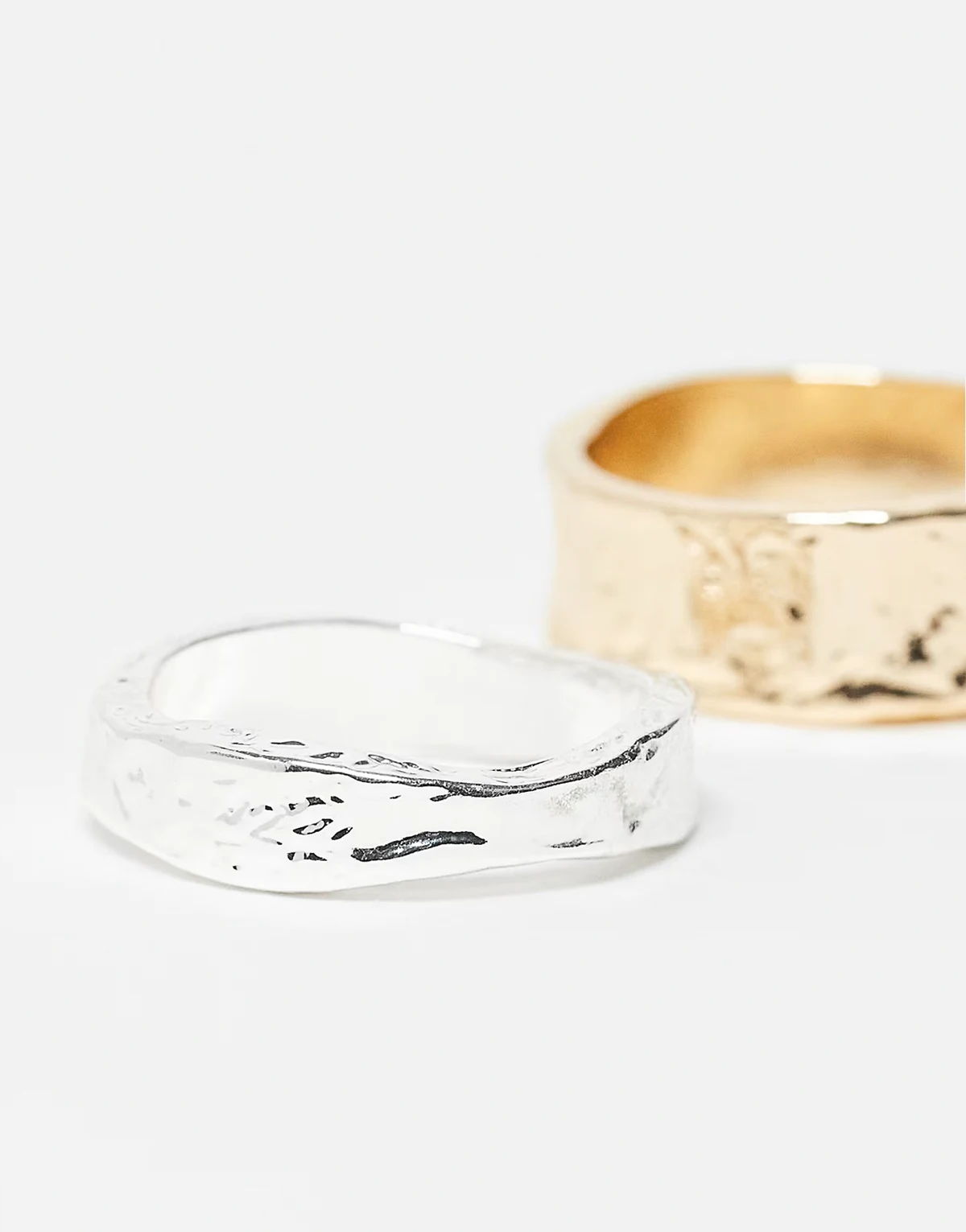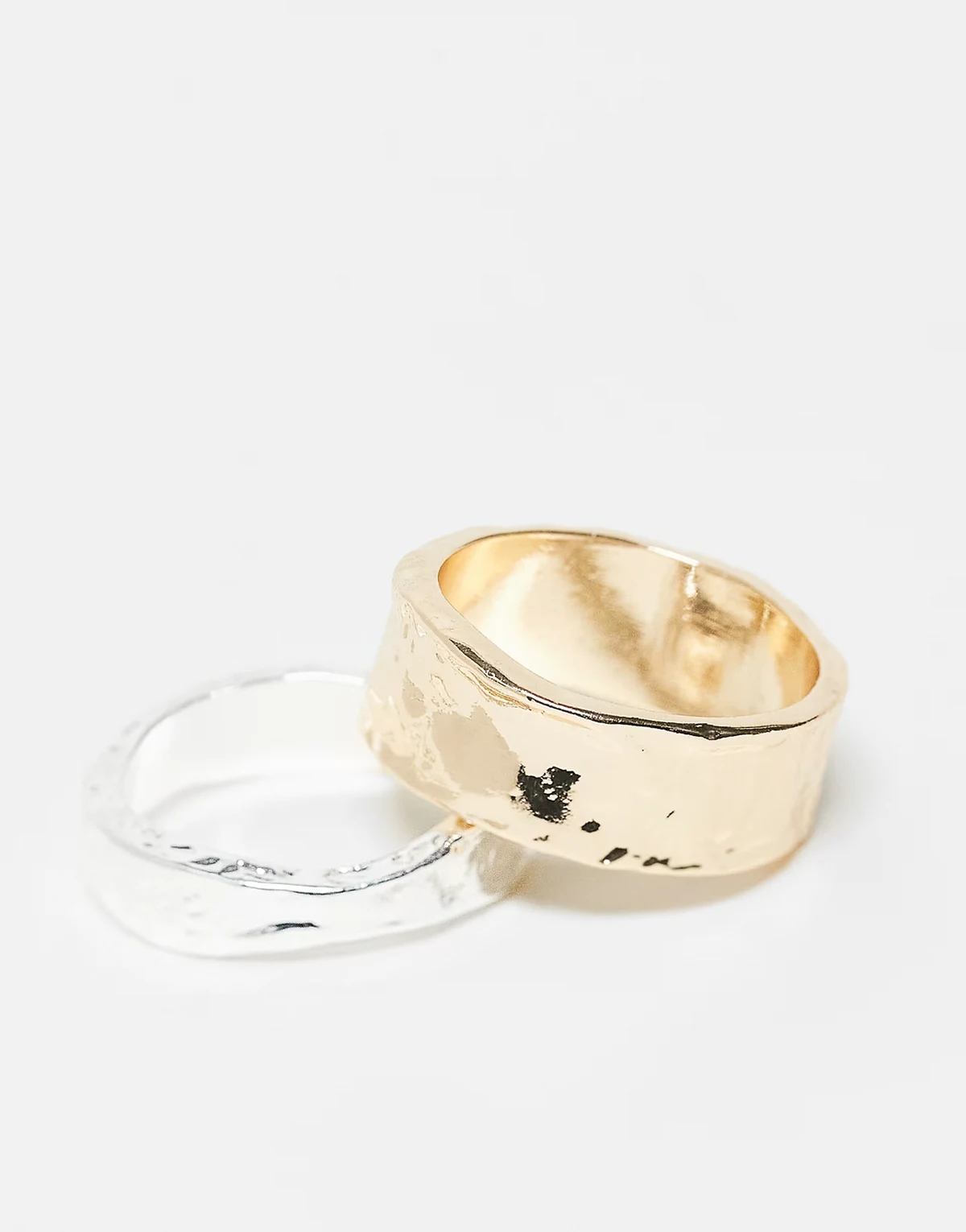 Unisex – Zestaw młotkowanych pierścionków z mieszanych metali w kolorach srebrnym i złotym
