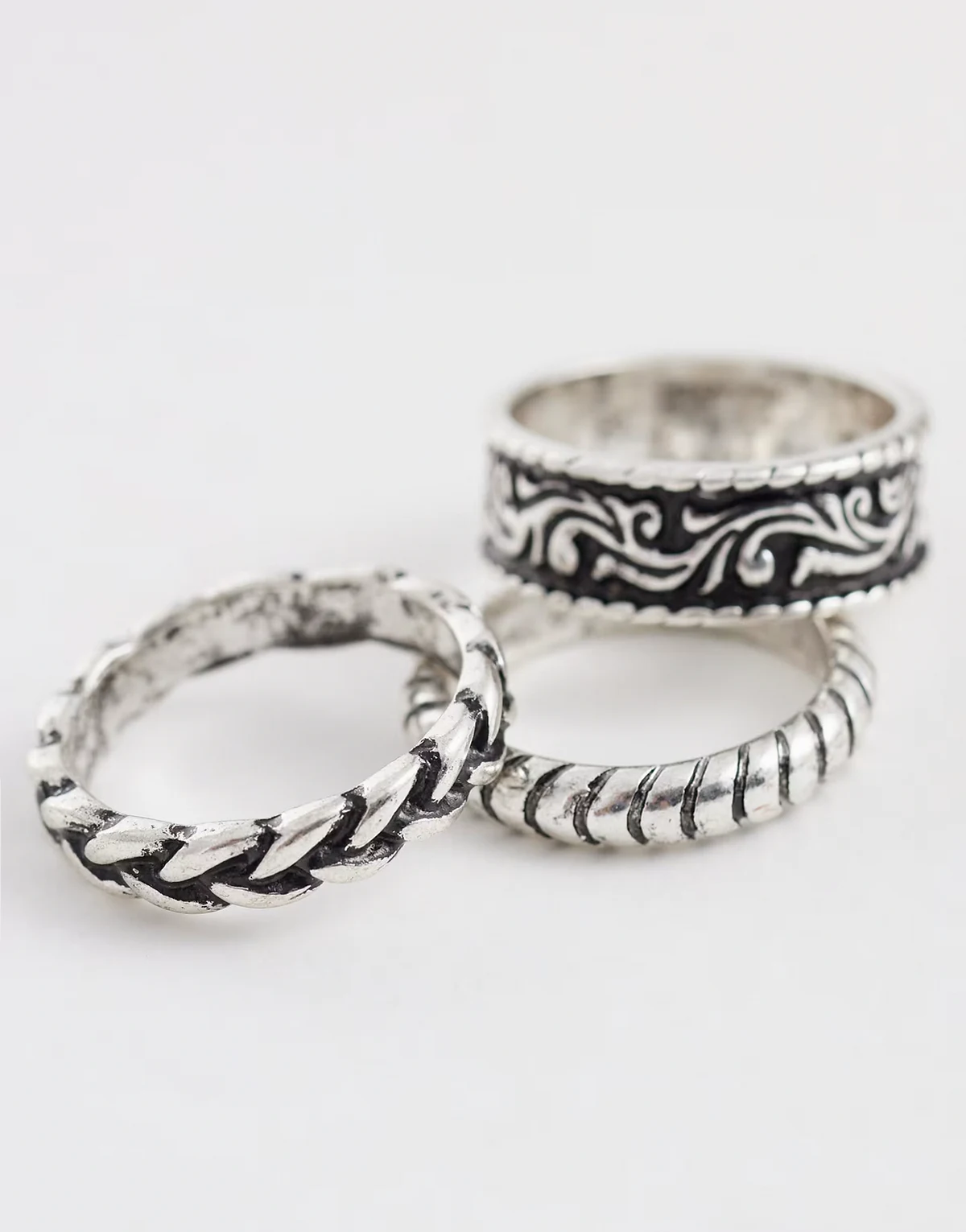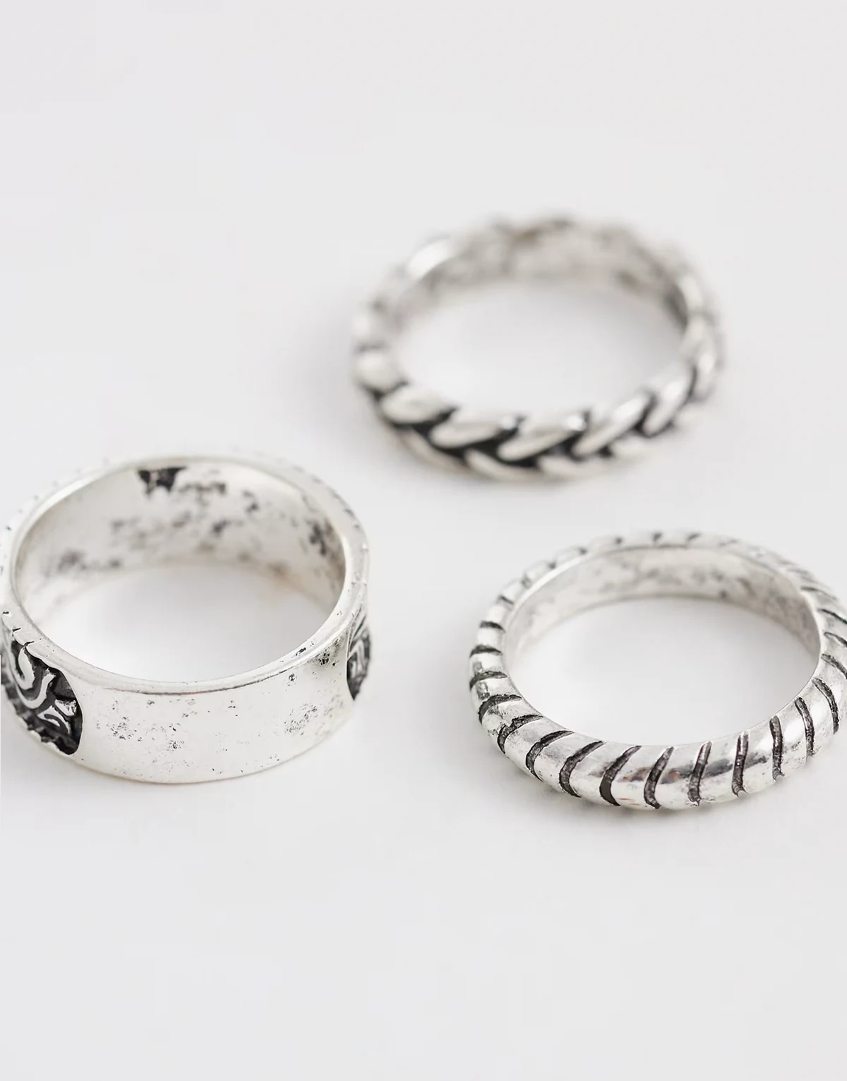 – Zestaw 3 pierścionków w kolorze srebrnym z fakturą i wzorem