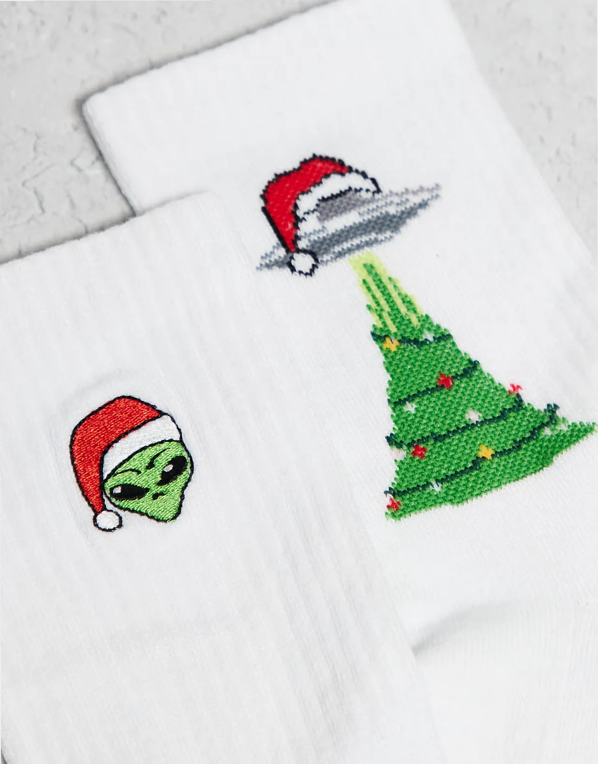 – Zestaw 2 par białych skarpetek ze świątecznym i kosmicznym motywem