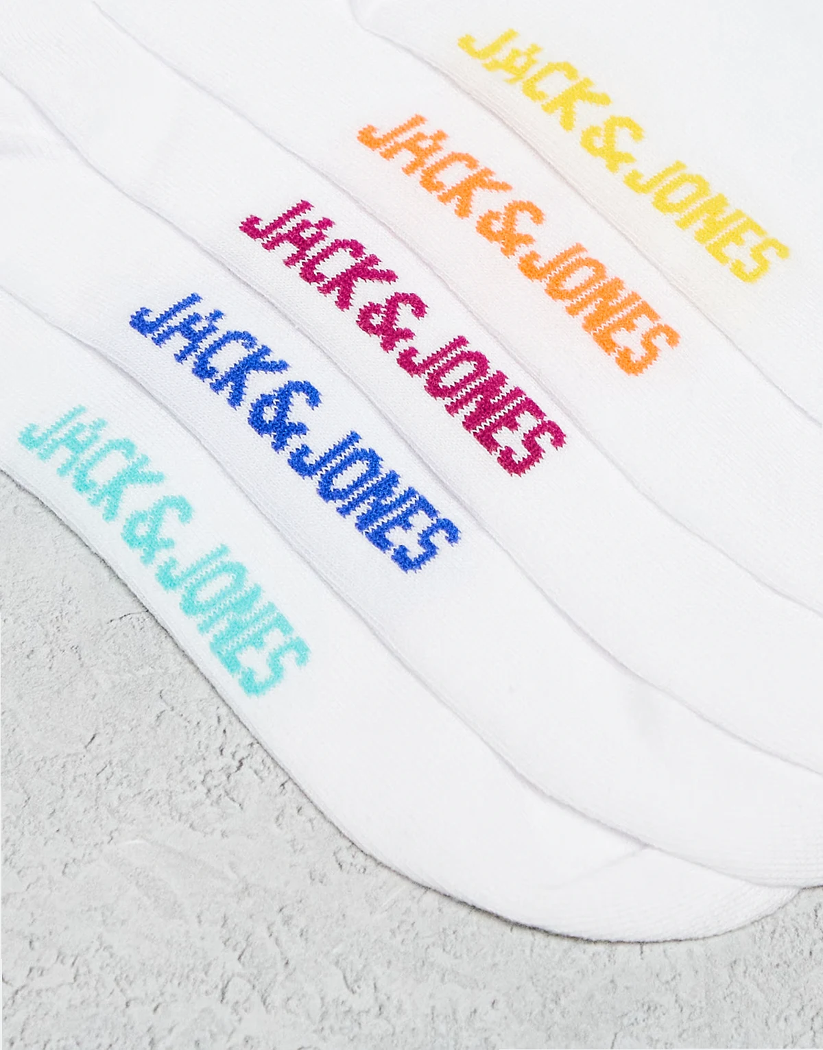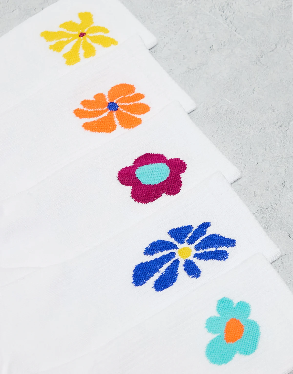 – Zestaw 5 par białych skarpetek tenisowych z wzorami