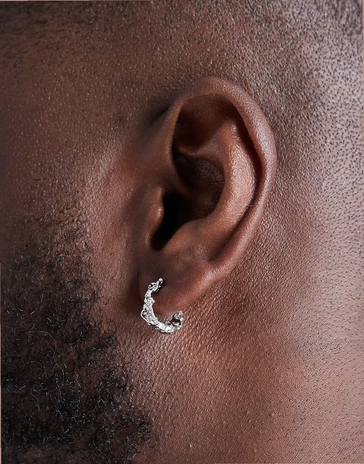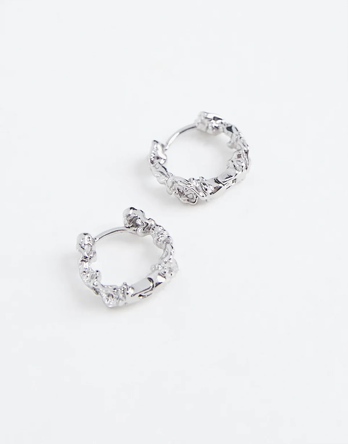 – Kolczyki-kółka o stopionym młotkowanym kształcie w kolorze srebra