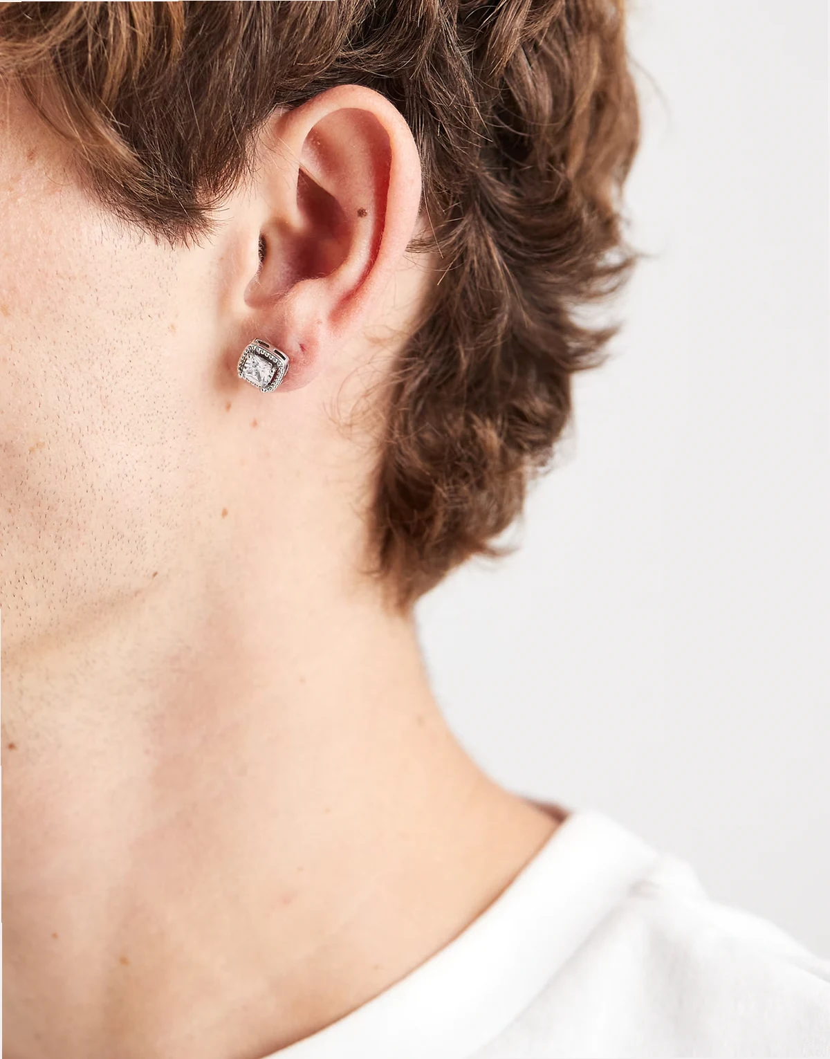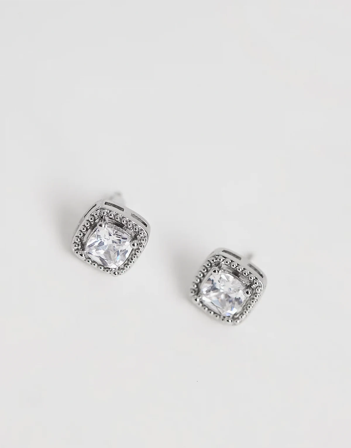 – Kolczyki w odcieniu srebra z kwadratowymi kryształkami