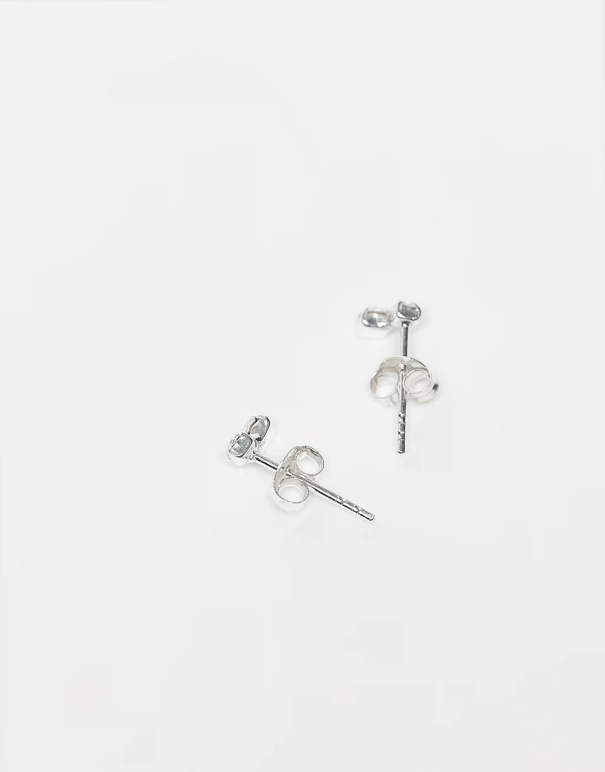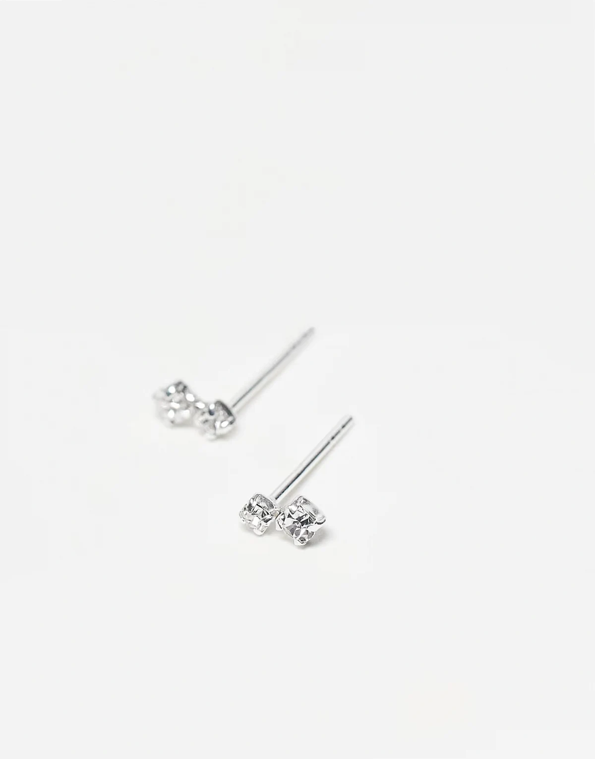– Kolczyki wkrętki w kolorze srebra z trzema kryształkami
