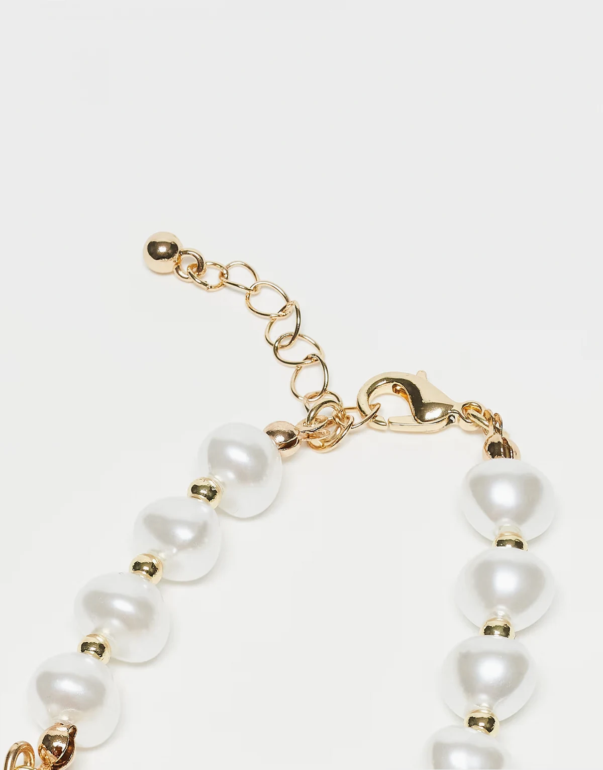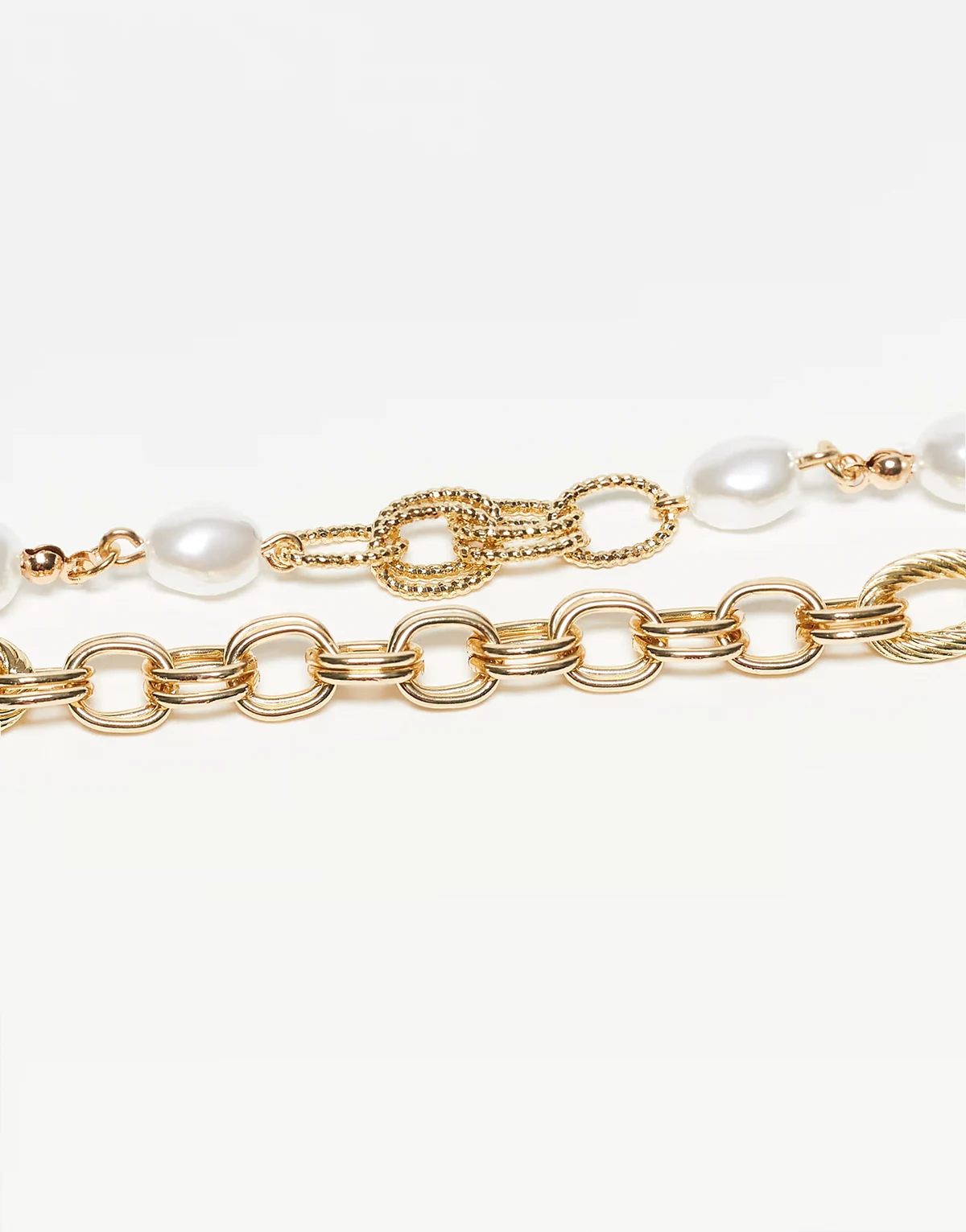 – Zestaw 2 bransoletek łańcuszkowych unisex w odcieniu złota z perełkami