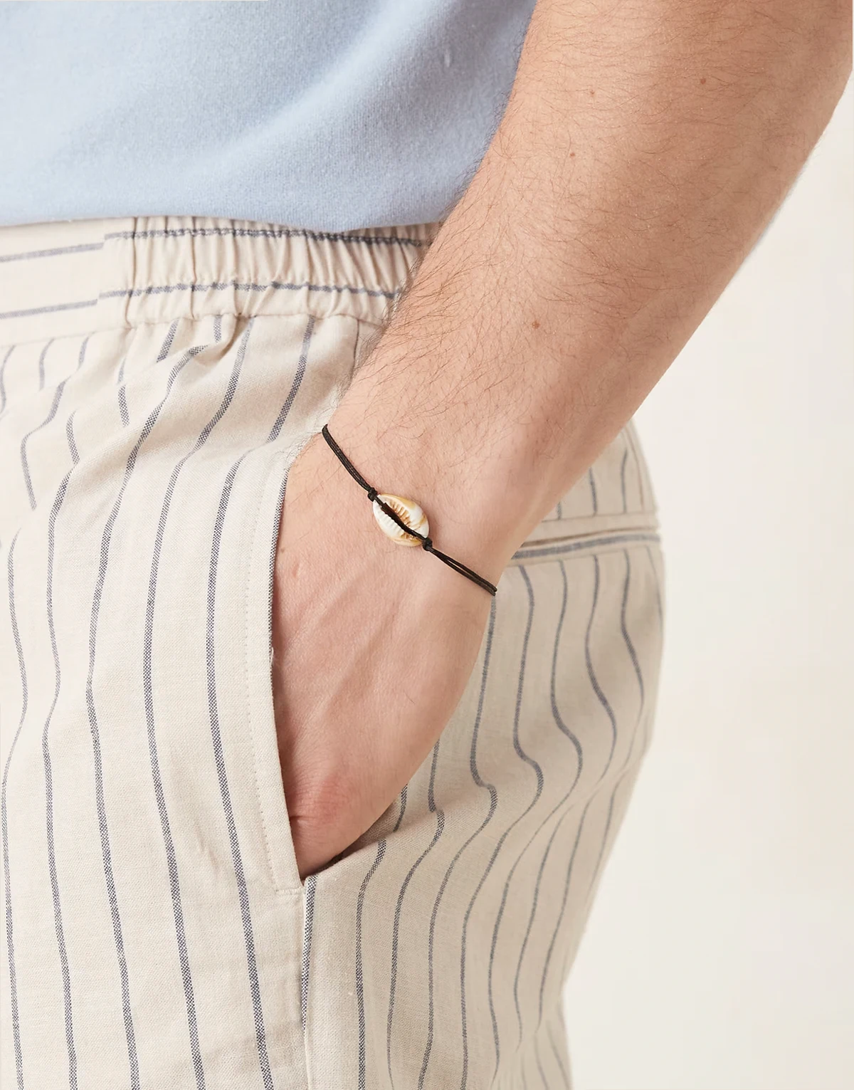 – Bransoletka z czarnego sznurka z zawieszką ze sztuczną muszką kauri
