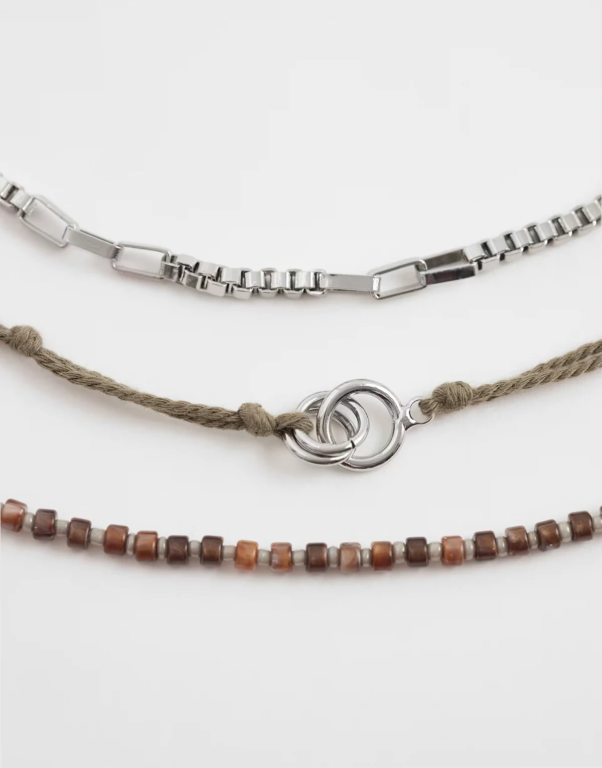 – Zestaw 3 bransoletek ze sznurka i koralików w różnych kolorach