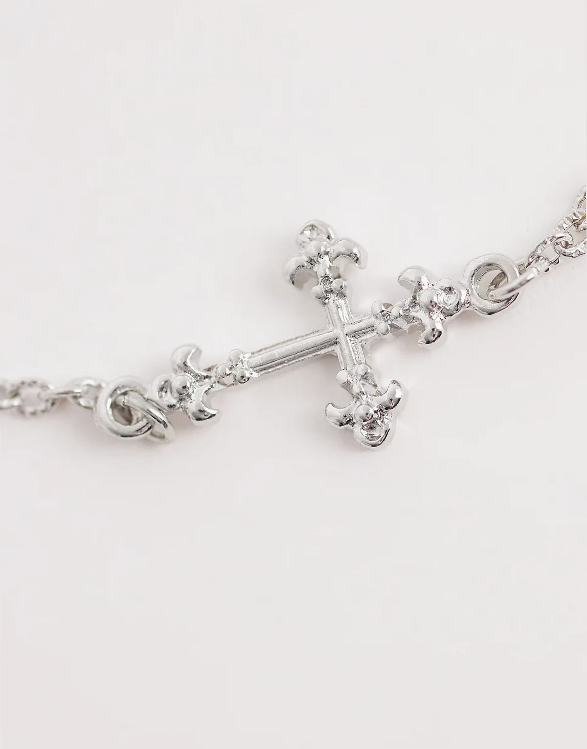 – Bransoletka łańcuszkowa unisex z krzyżem w odcieniu srebra