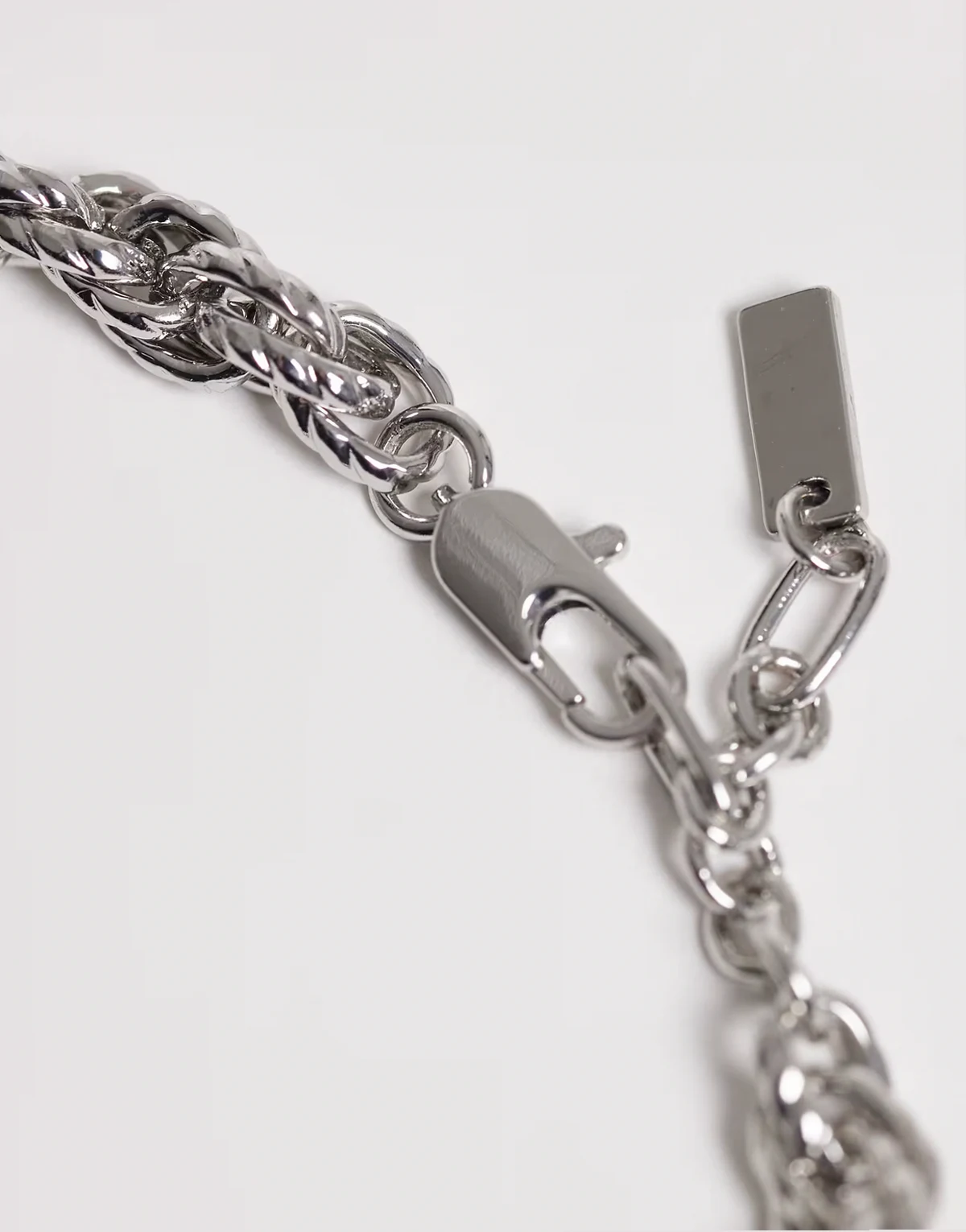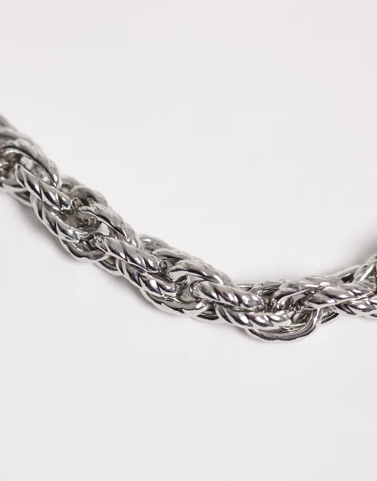 – Gruba bransoletka łańcuszkowa w kolorze srebra z fakturowanymi ogniwami