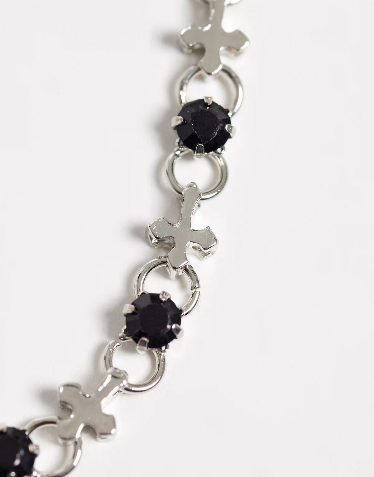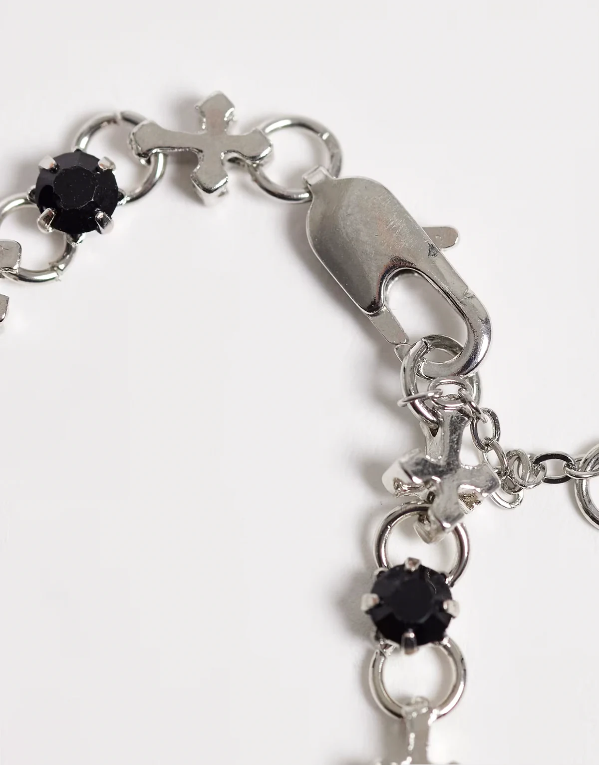 – Bransoletka łańcuszkowa w kolorze srebra, z czarnymi kamieniami i krzyżykami