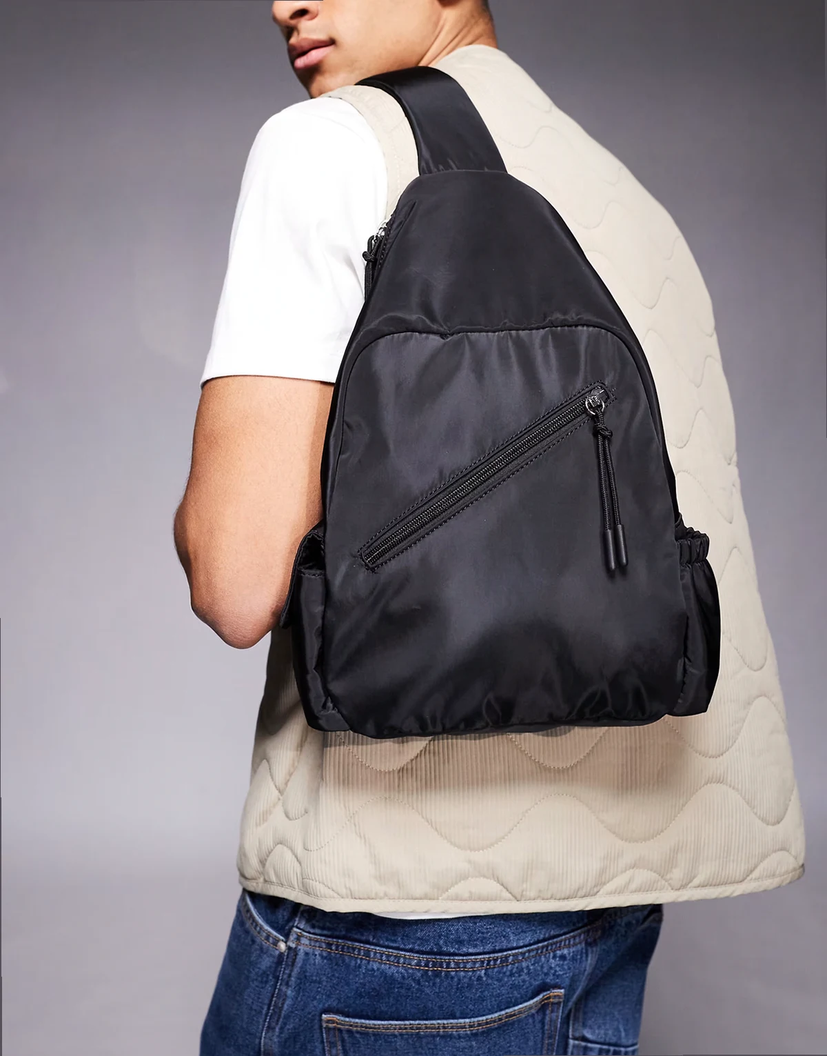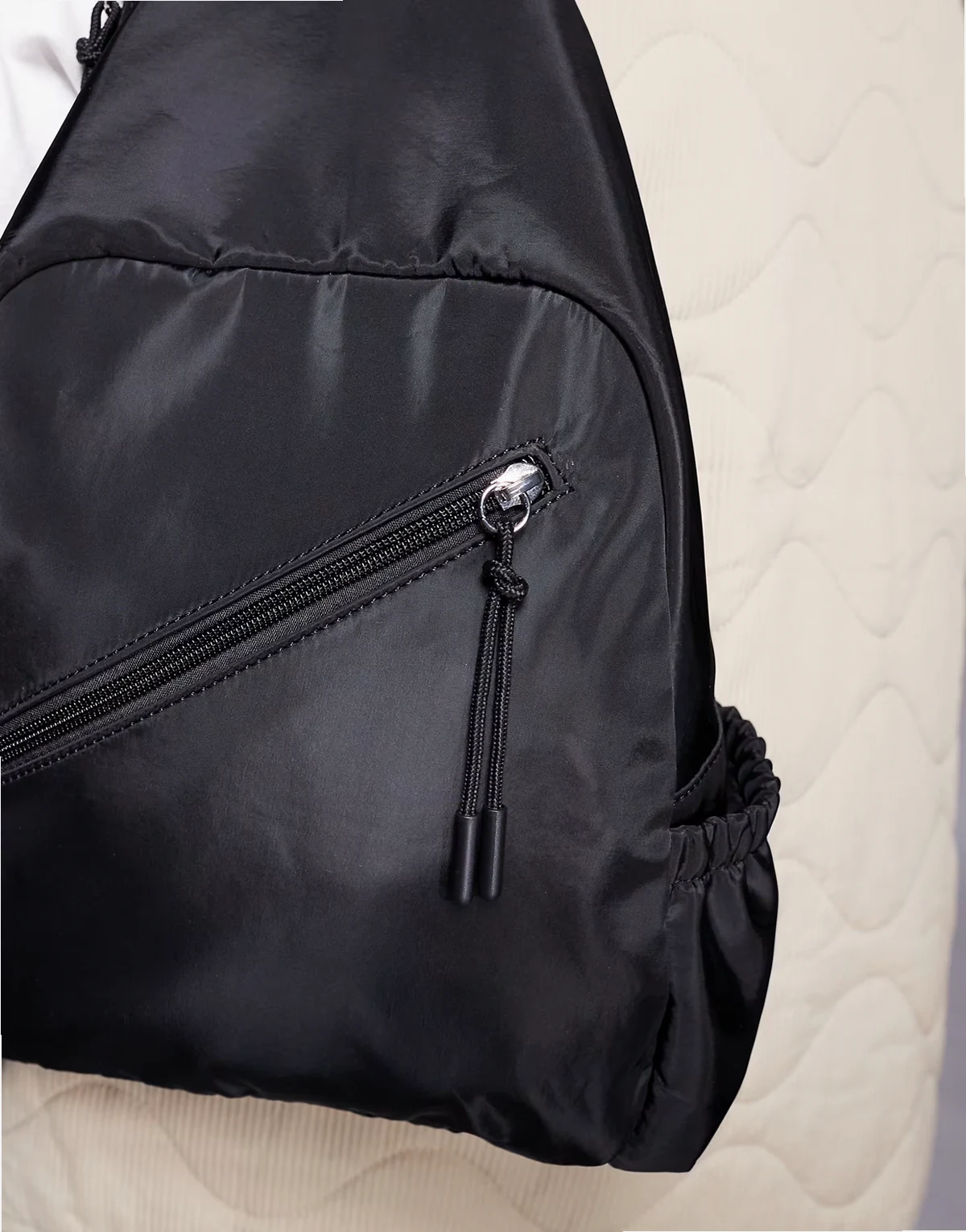 – Czarny nylonowy plecak crossbody