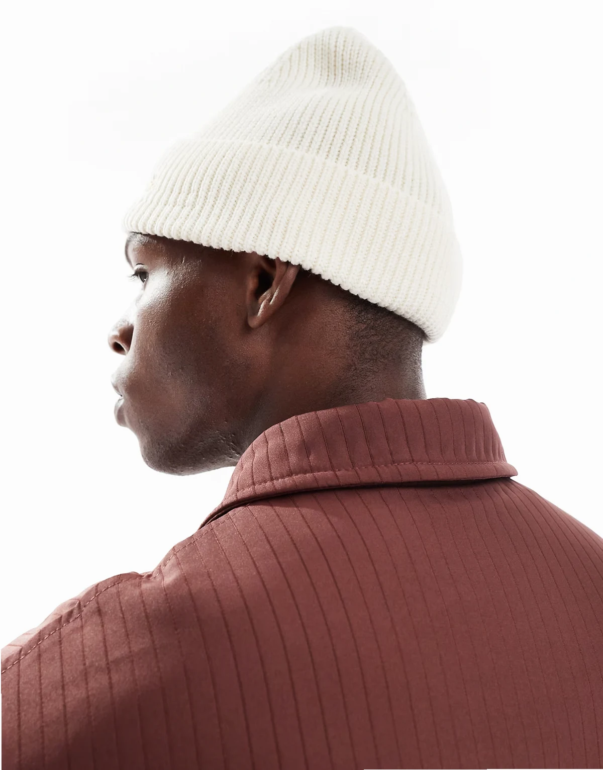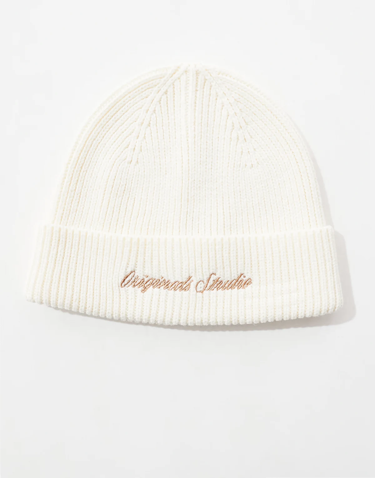 – Original Studio – Prążkowana kremowa czapka beanie z haftowanym napisem