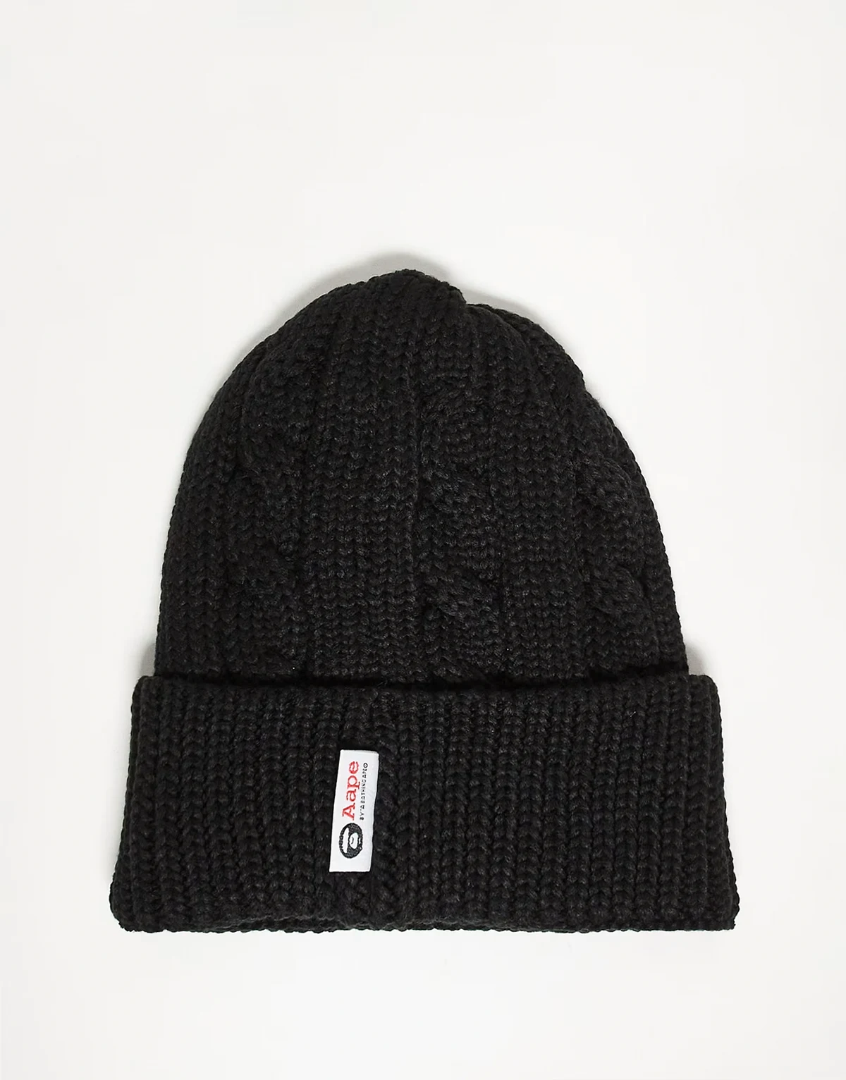 AAPE by A Bathing Ape – Czarna czapka beanie z dzianiny o warkoczowym splocie