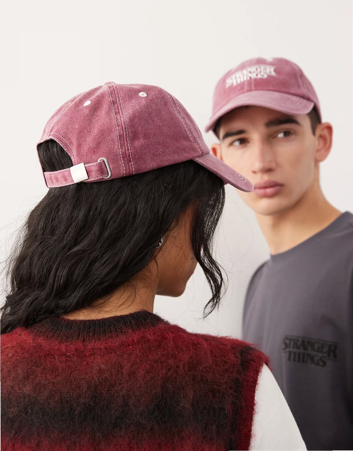 x Stranger Things – Bordowa czapka z daszkiem, logo i efektem sprania, unisex