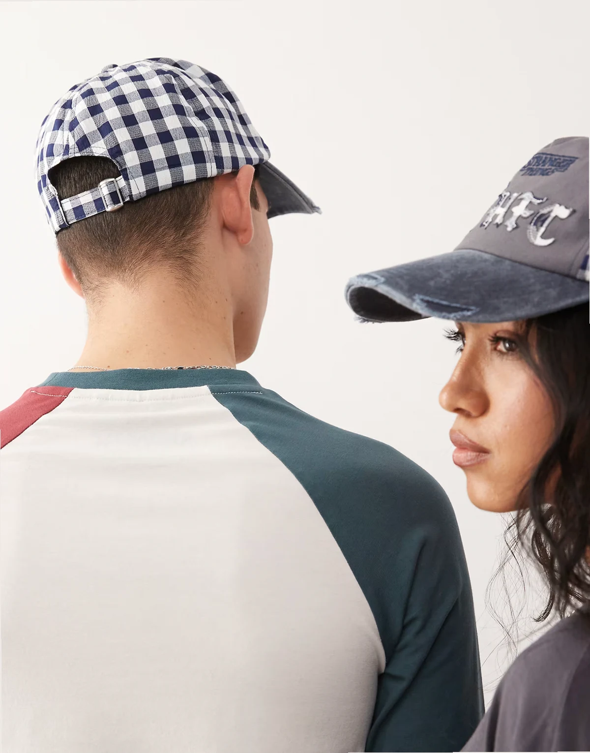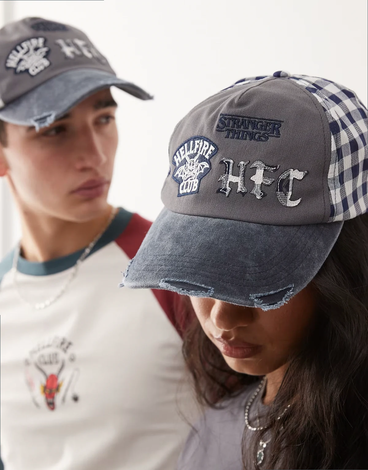 x Stranger Things – Czapka z daszkiem unisex w kontrastową kratę z logo