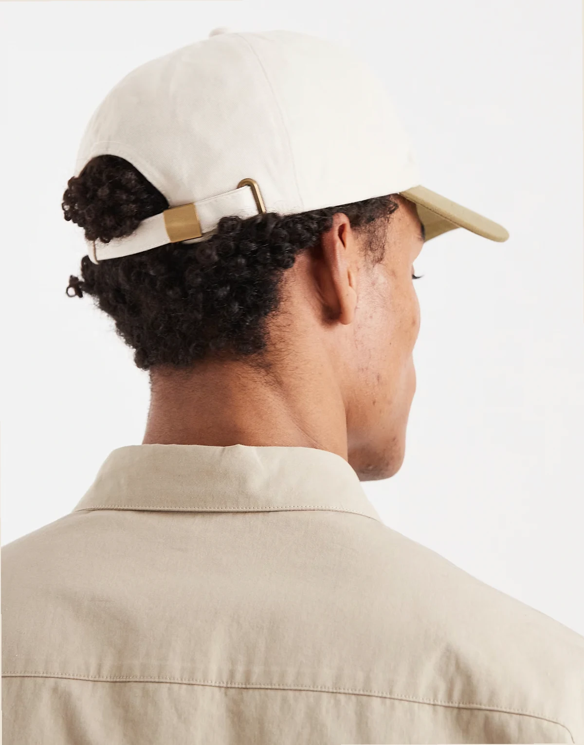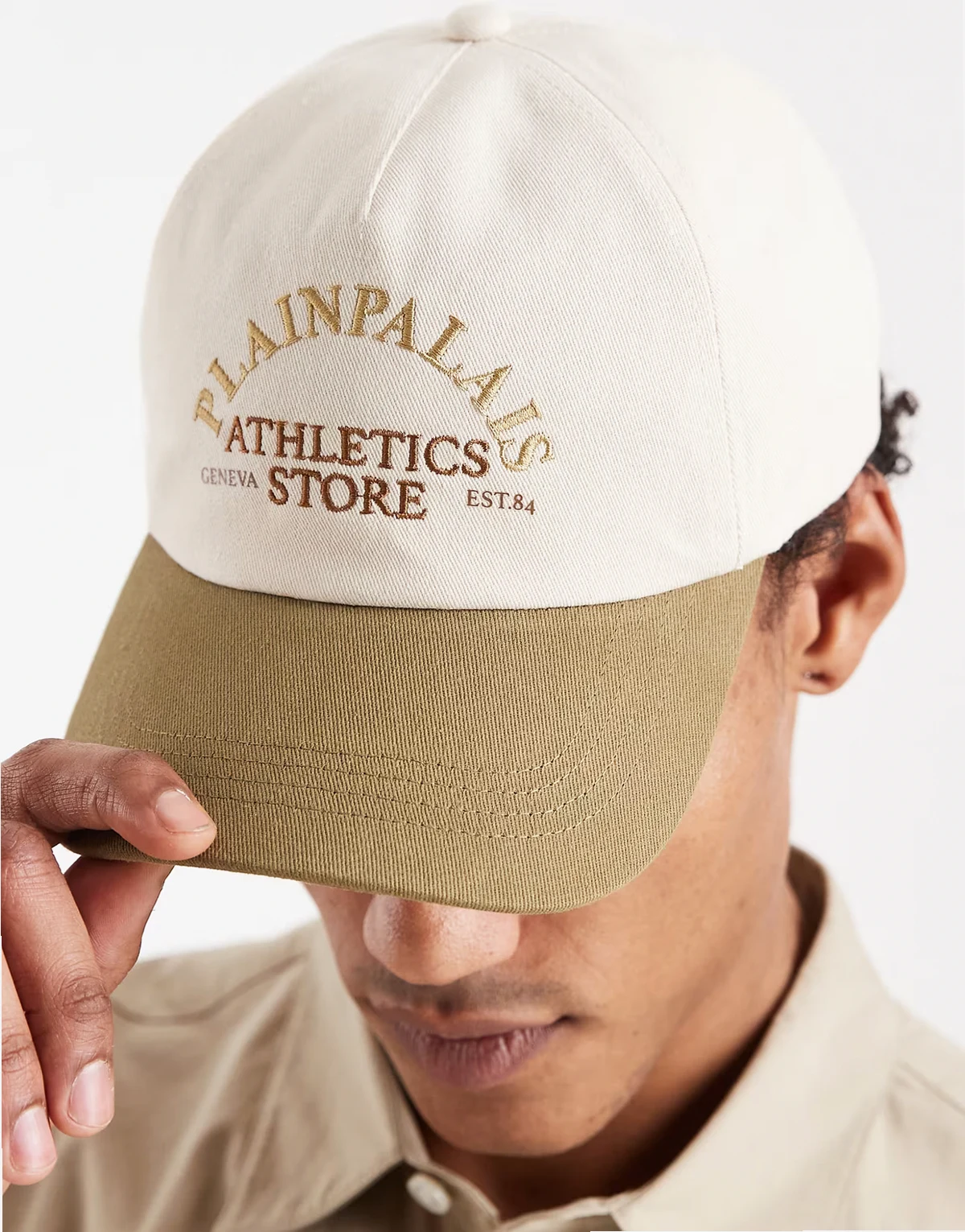 – Szałwiowa czapka z kontrastowym daszkiem i haftowaną wstawką