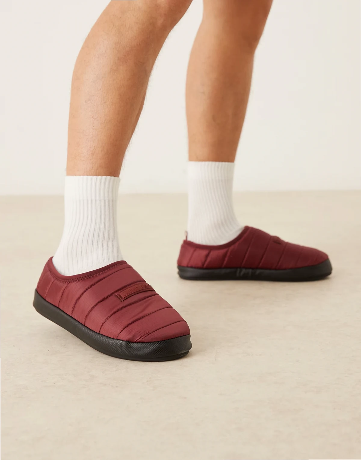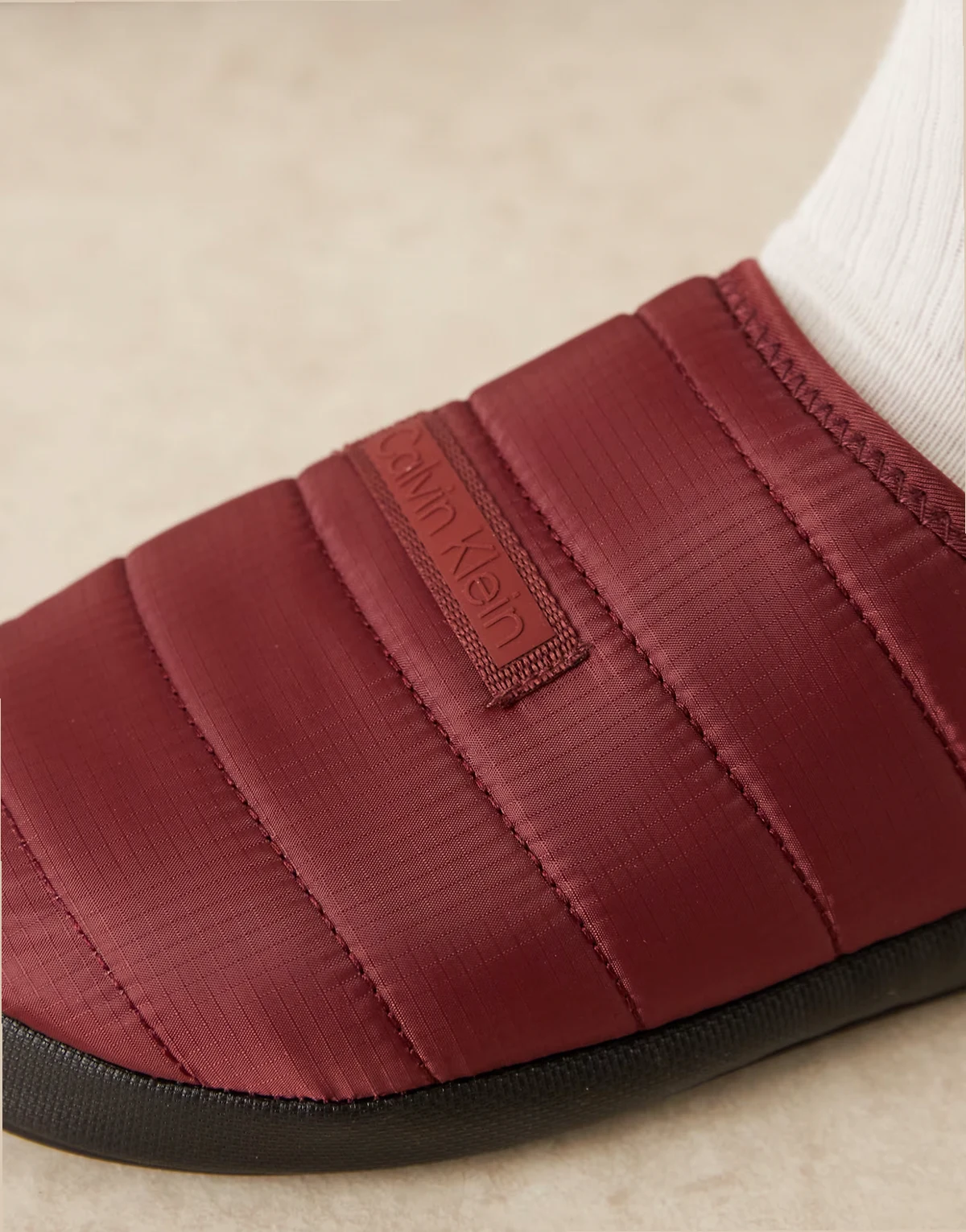 – Bordowe pikowane kapcie z ripstopu